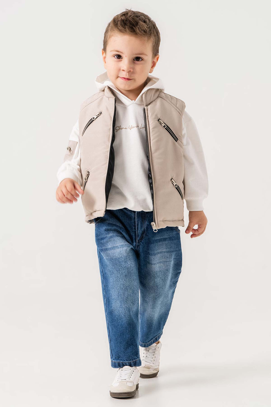 Gold Class Kidswear'ın özenle tasarladığı Uzun Kollu Kapüşonlu Sweatshirtlü Fermuarlı 3 Parça Erkek Çocuk Yelekli...