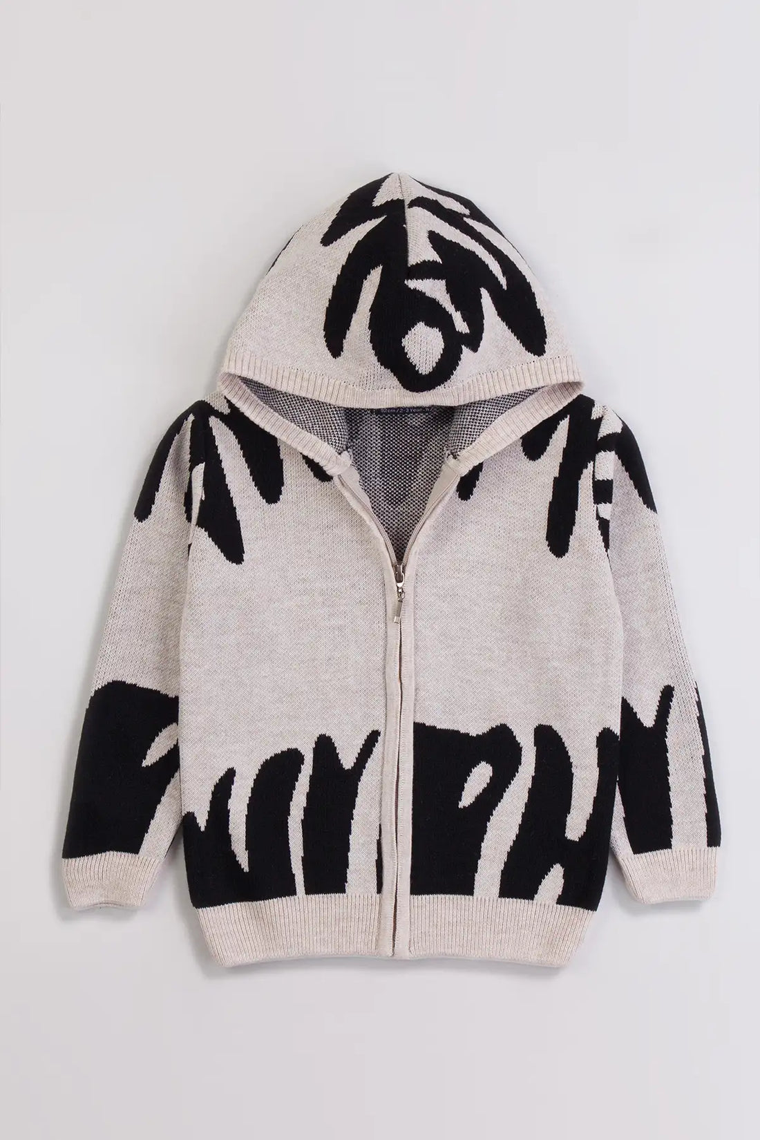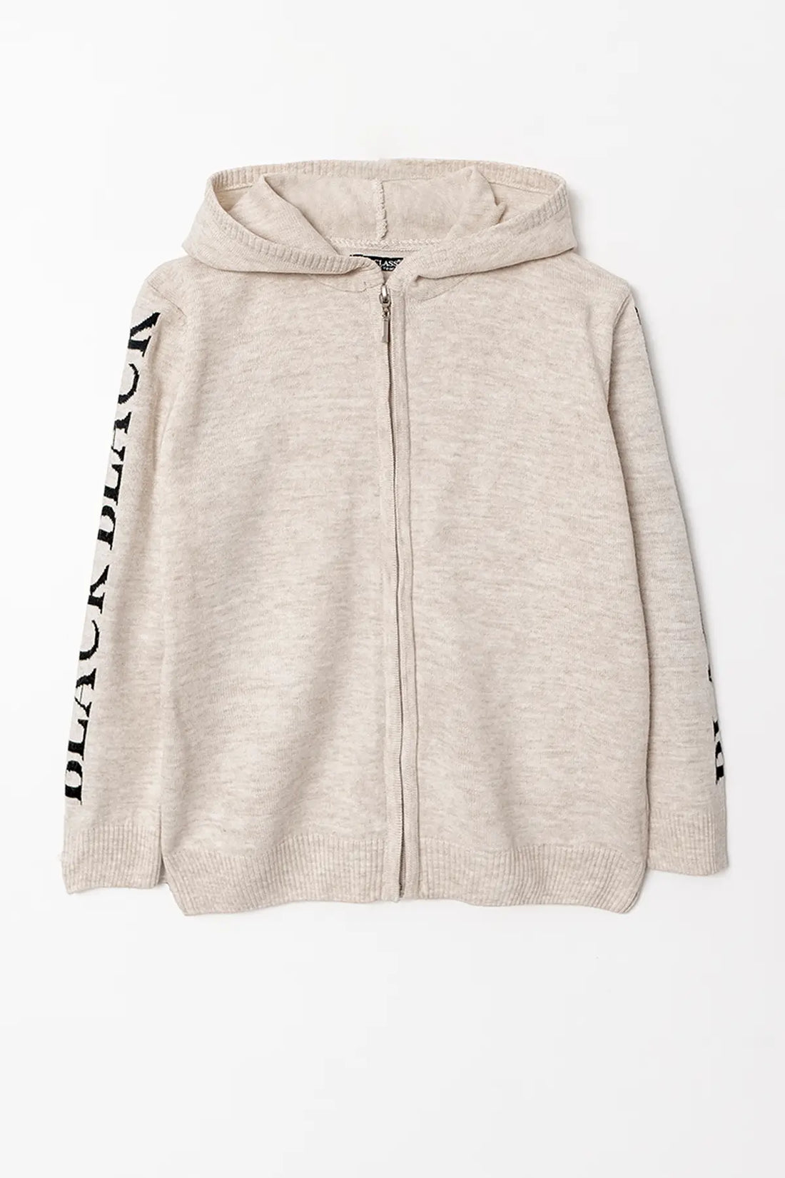 Uzun Kollu Kapüşonlu Fermuarlı Erkek Çocuk Triko Hırka