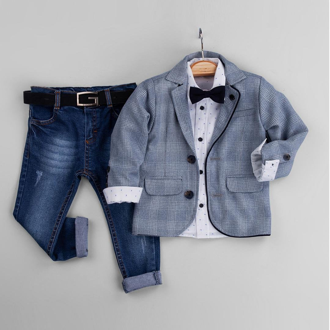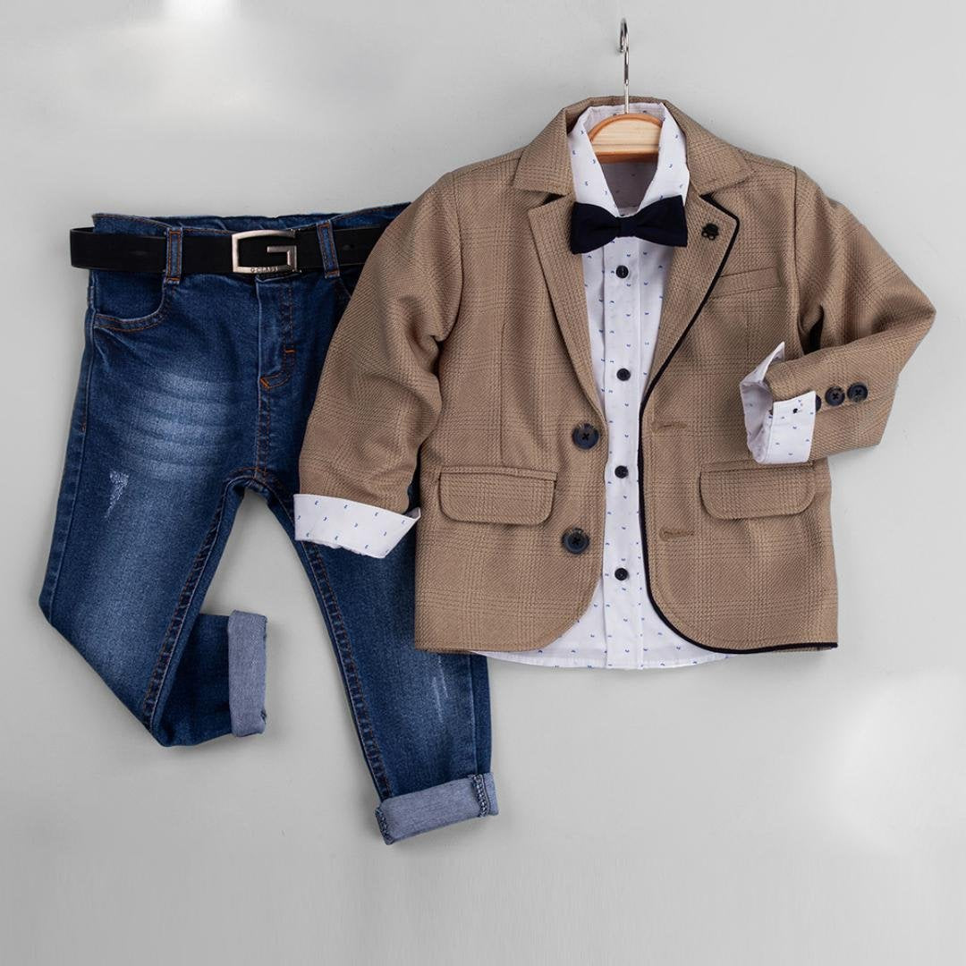 Cepli Düğmeli Papyonlu 5'li Erkek Çocuk Takım Elbise