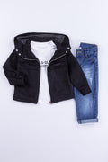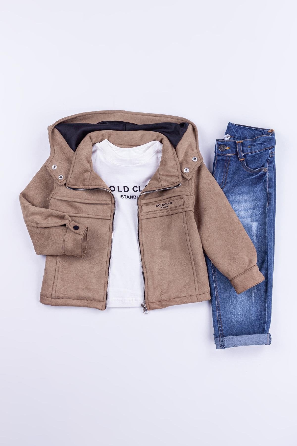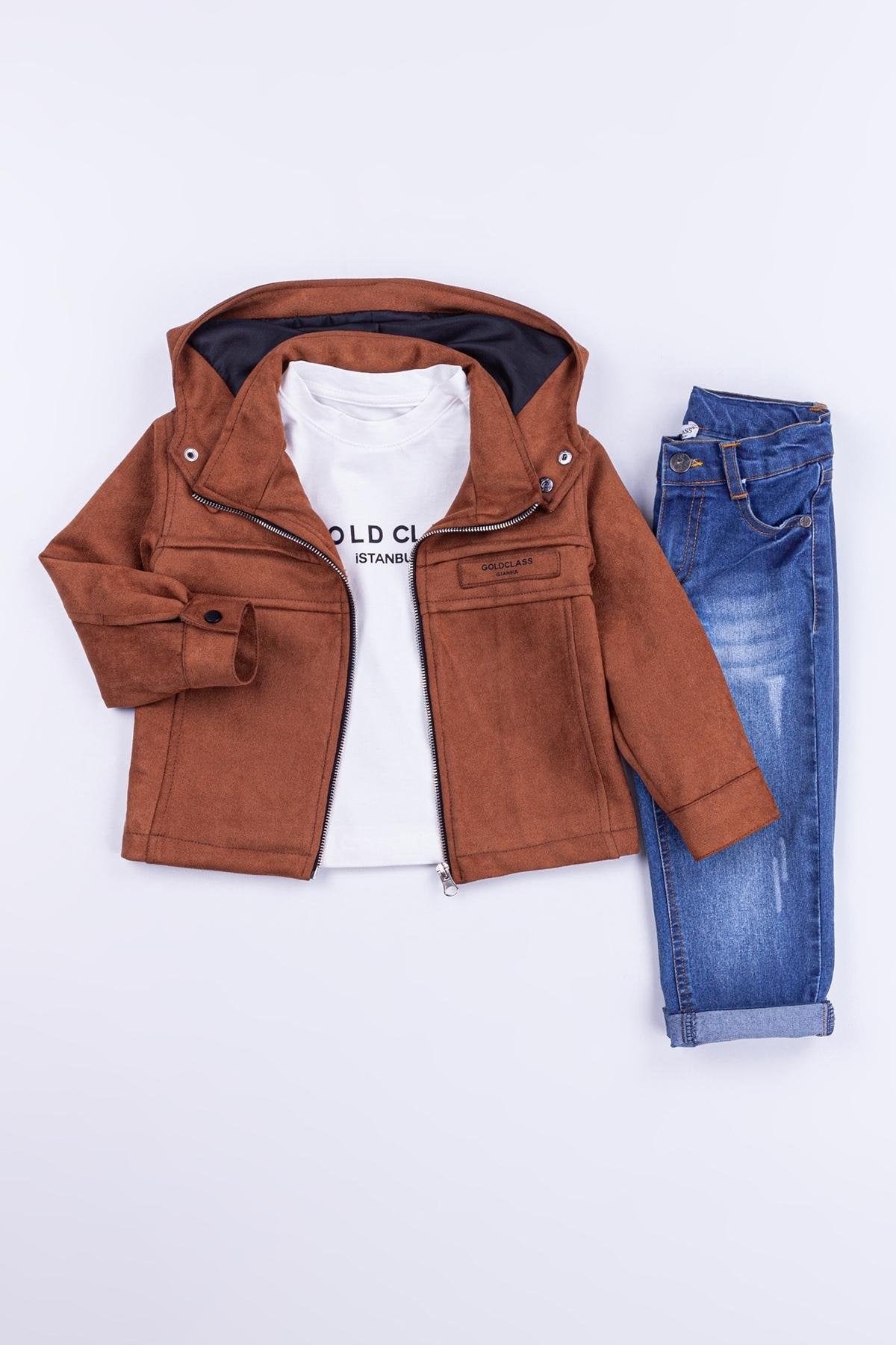 Cepli Fermuarlı Kapüşonlu Rivet Detaylı Süet 3'lü Erkek Çocuk Ceketli Takım