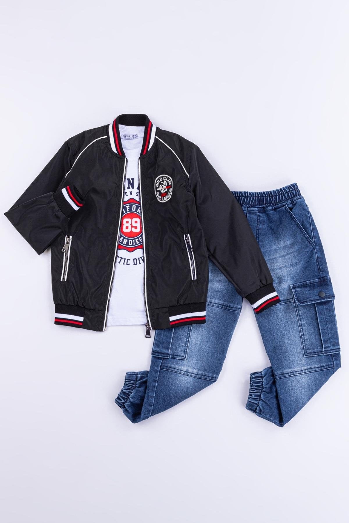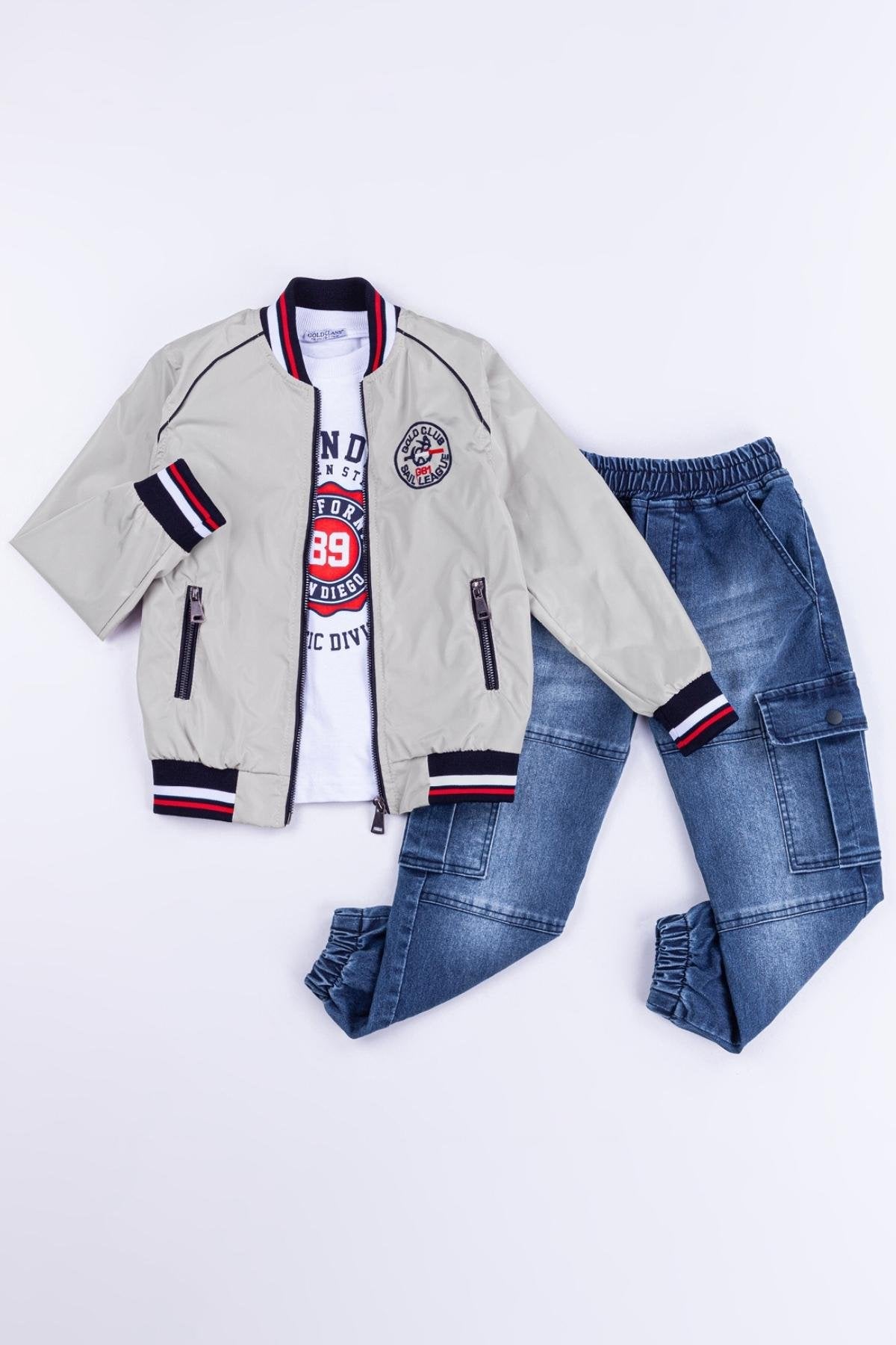 Gold Class Kidswear'ın özel tasarımı olan Cepli Fermuarlı Memory Kumaş Su Geçirmez 3'lü Erkek Çocuk Ceketli Takımı, hem şıklığı hem de işlevselliği bir araya getiriyor. Bu takım, ceket, tişört ve pantolon olmak üzere üç parçadan oluşur ve çocuğunuzun gardırobunu tamamlayacak mükemmel bir kombinasyon sunar.