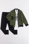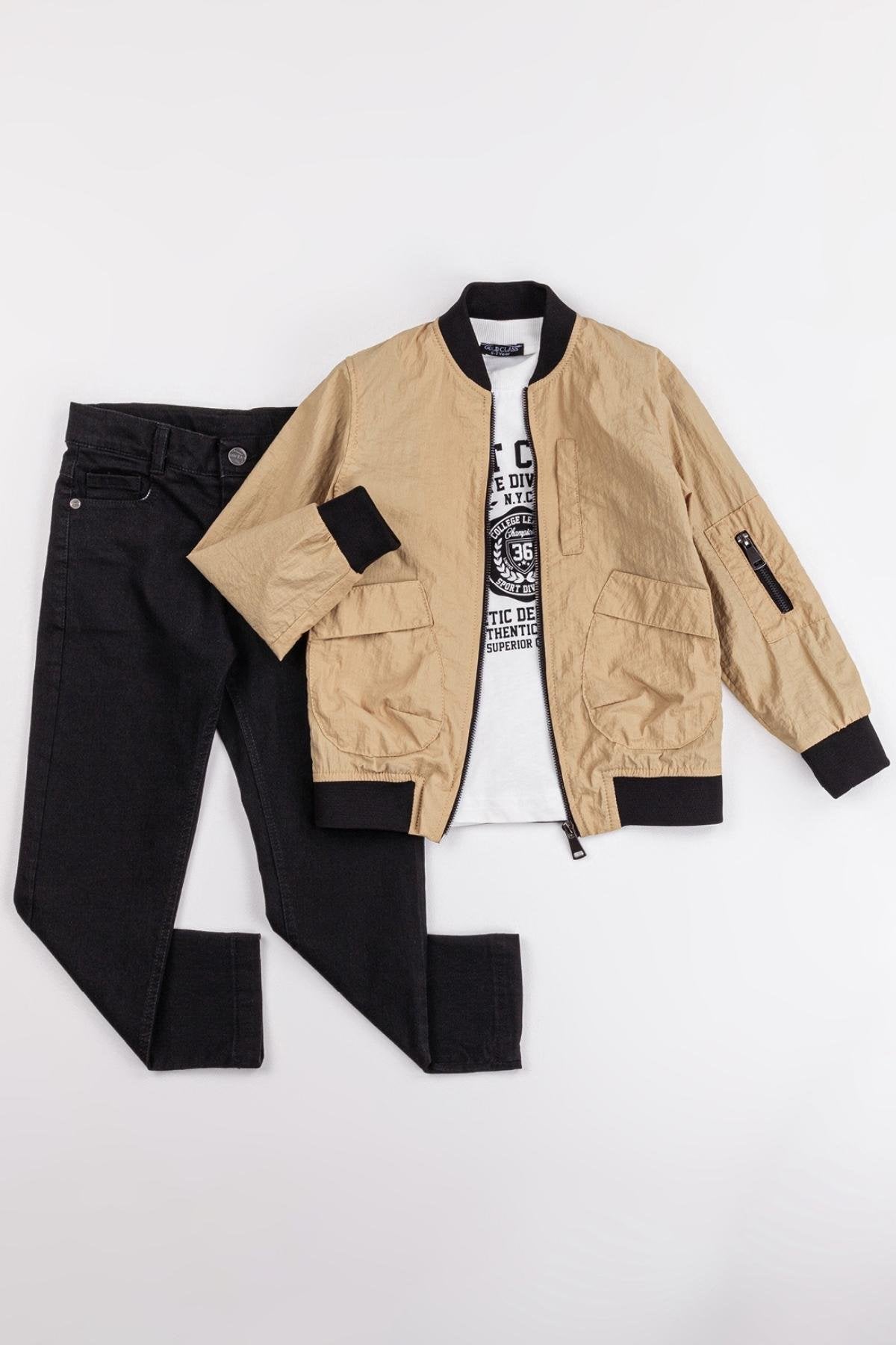 Cepli Fermuarlı Su Geçirmez Paraşüt Kumaş 3'lü Erkek Çocuk Ceketli Takım