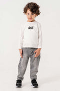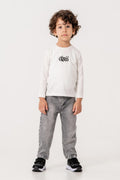Takımın beyaz, baskılı, uzun kollu body’si %100 pamuktan üretilmiştir ve çocukların hassas cildine uygun yumuşak bir doku sunar.
