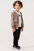 Gold Class Kidswear kalitesiyle üretilen Cepli Su Geçirmez Kapüşonlu 3 Parça Erkek Çocuk Ceketli Takım, 2-5 yaş arası erkek çocuklar için tasarlandı. %100 polyesterden üretilen kapüşonlu ceket, su geçirmez özelliği ve astarlı yapısıyla soğuk ve yağışlı günlerde ekstra koruma sağlar. Çift göğüs cebi sayesinde pratik kullanım sunan ceket, bir cebi çıtçıtlı, diğer cebi çapraz fermuarlıdır. Fermuarlı kapama sistemi, kolları ve beli lastikli tasarımı hareket özgürlüğü sağlar.