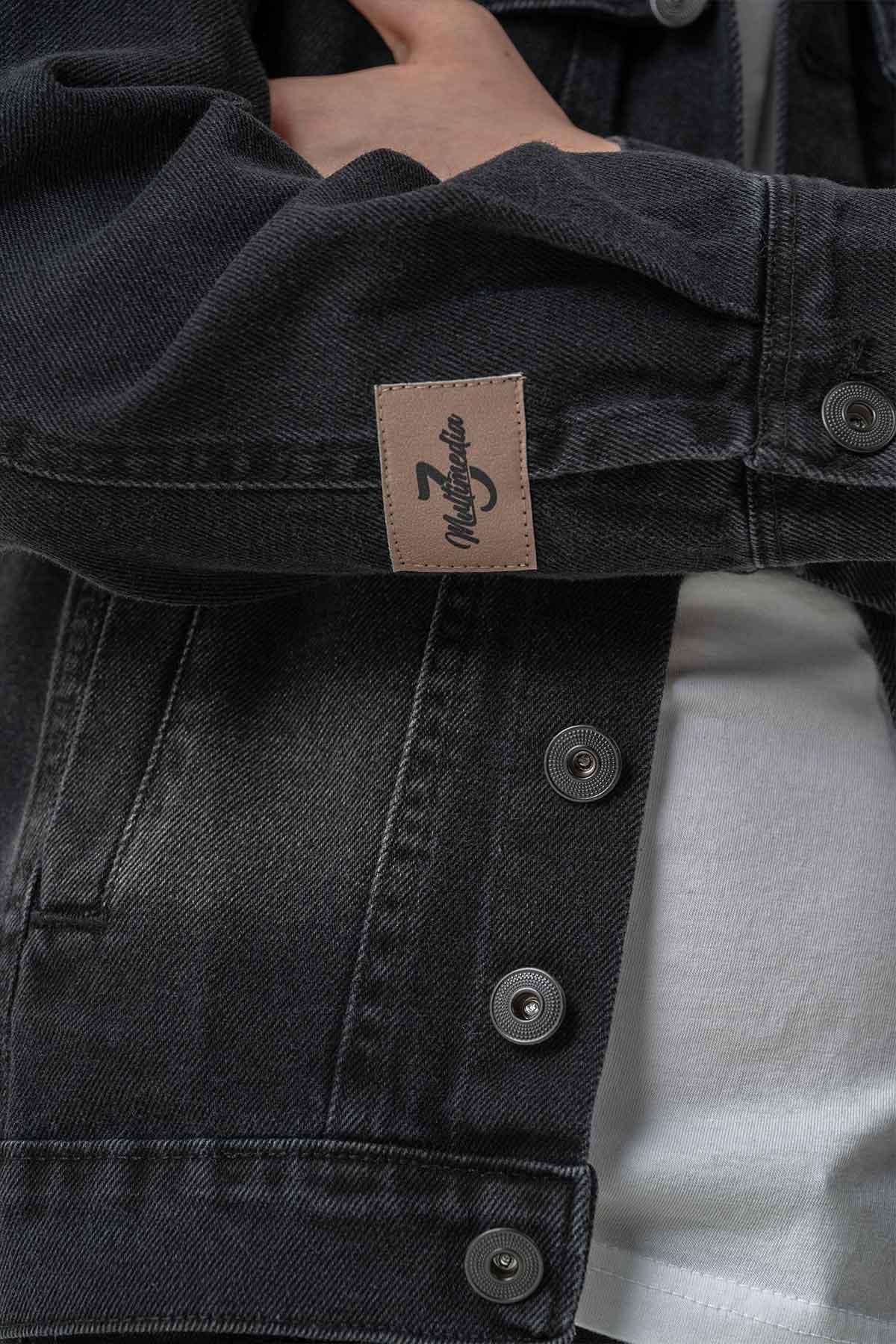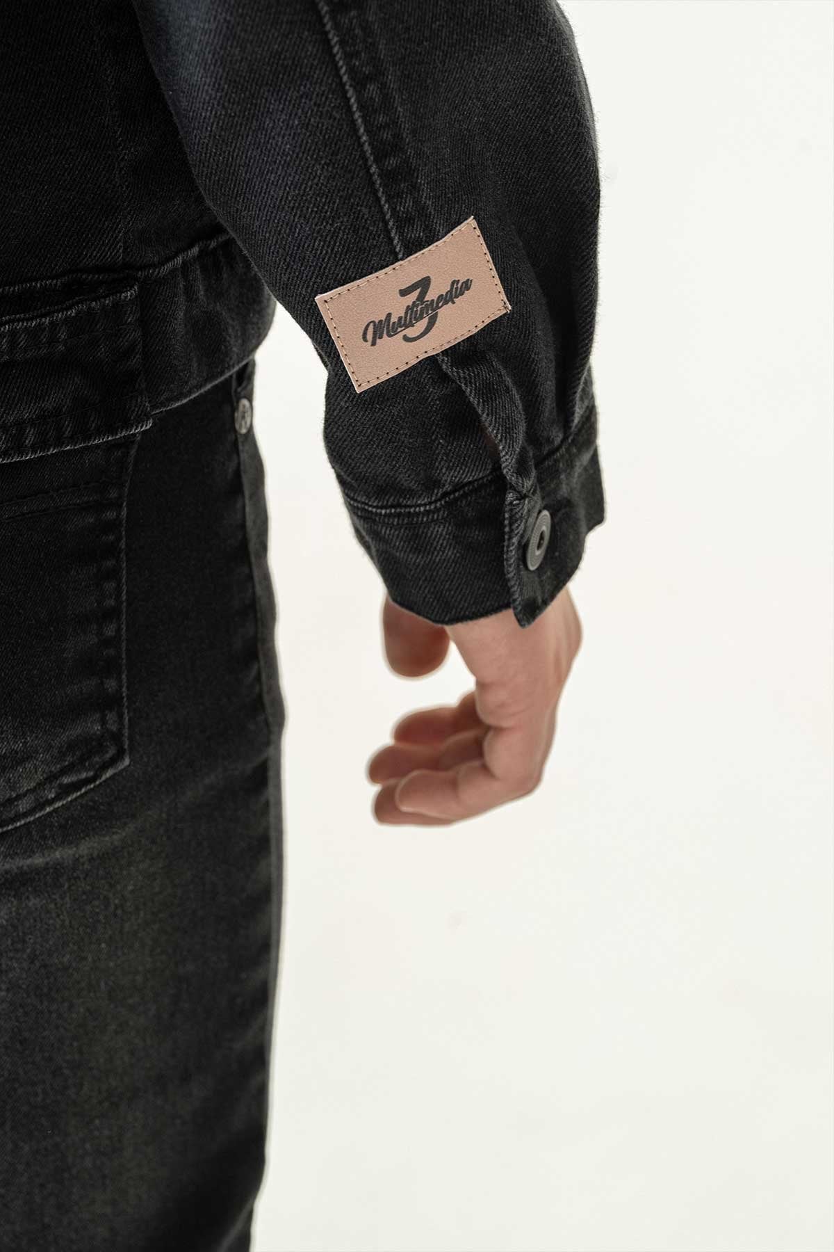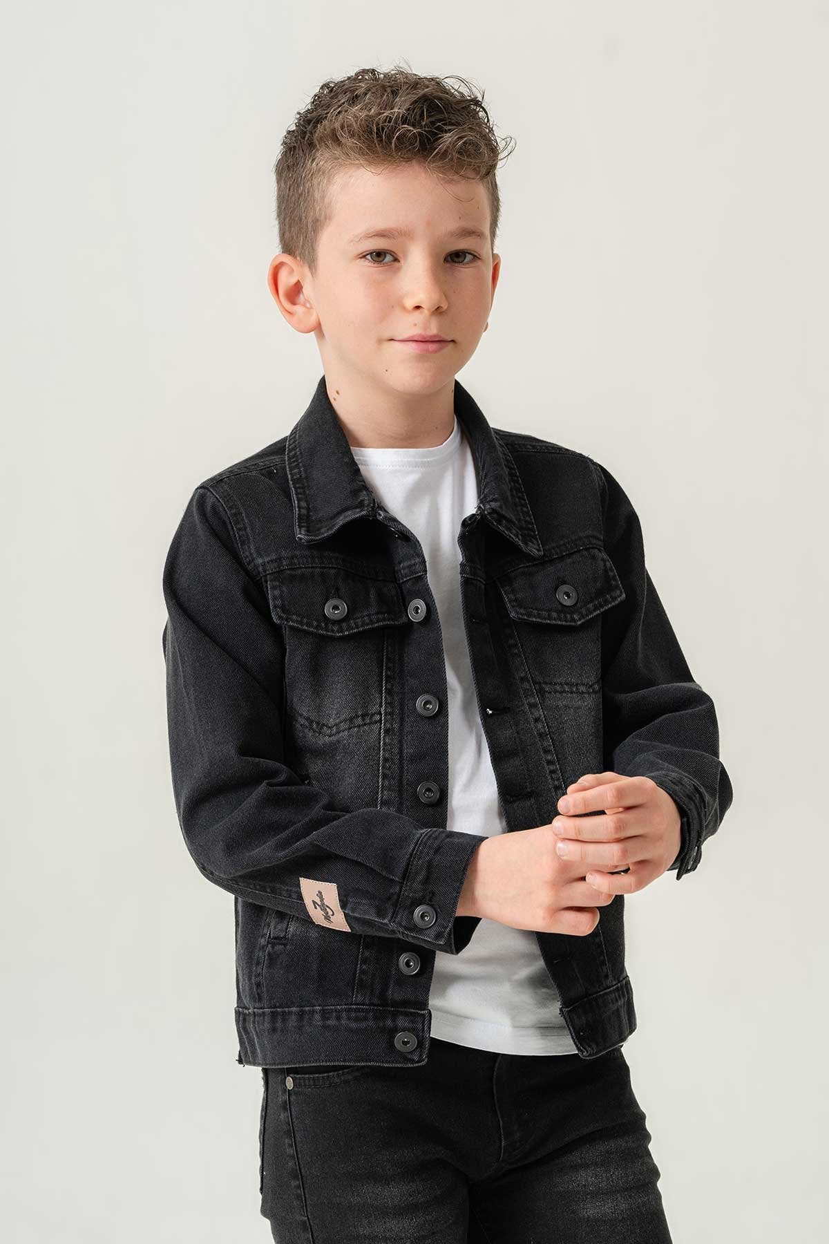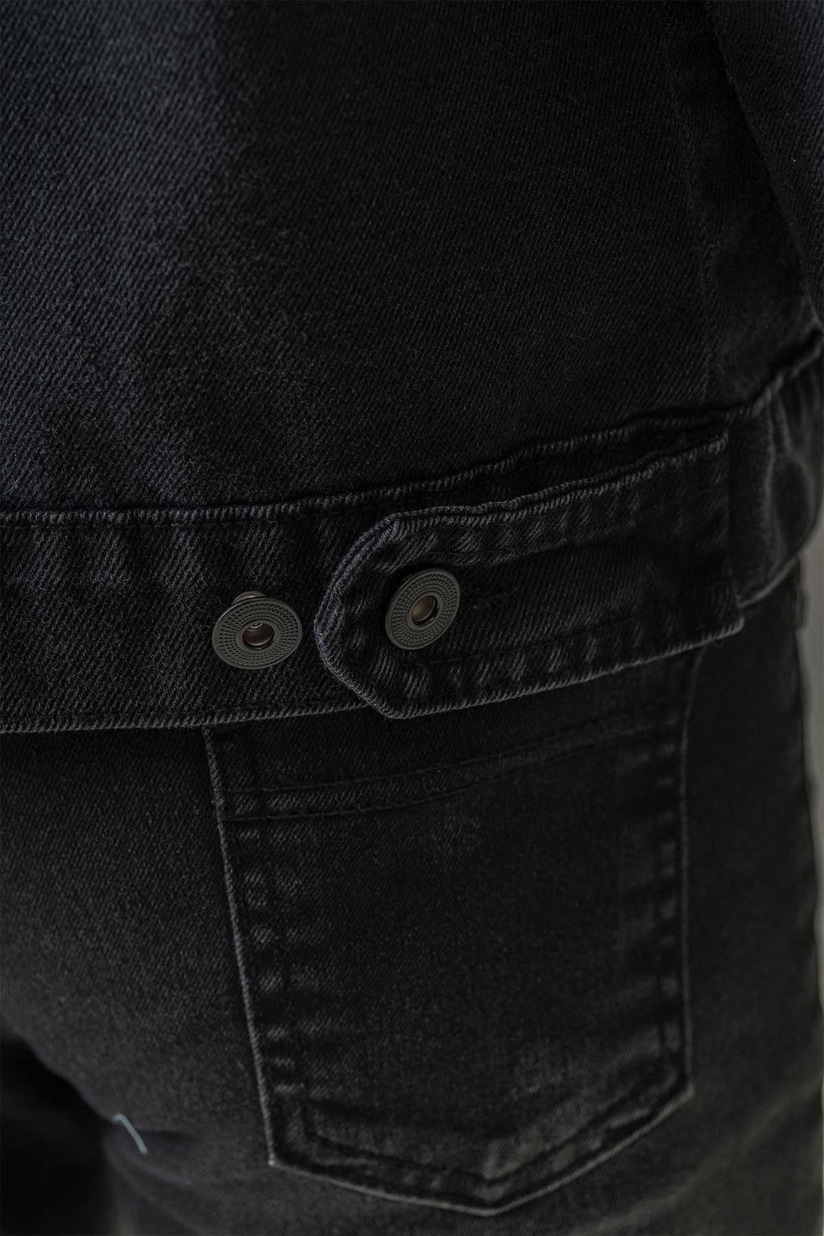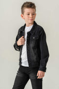 Çift Cepli Düğmeli Siyah Kot Erkek Çocuk Ceket