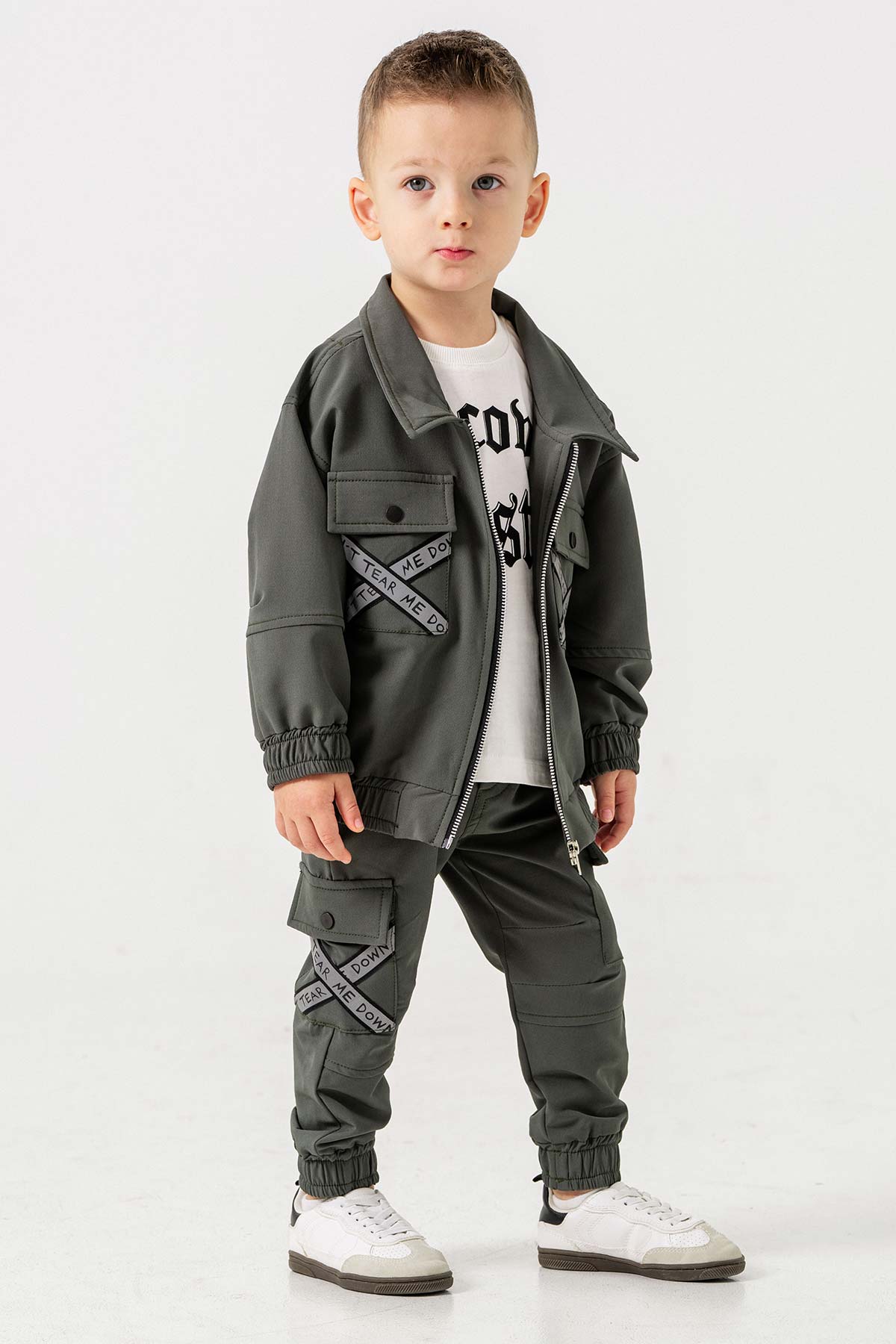 Çift Cepli Fermuarlı Su Geçirmez 3 Parça Erkek Çocuk Ceketli Takım