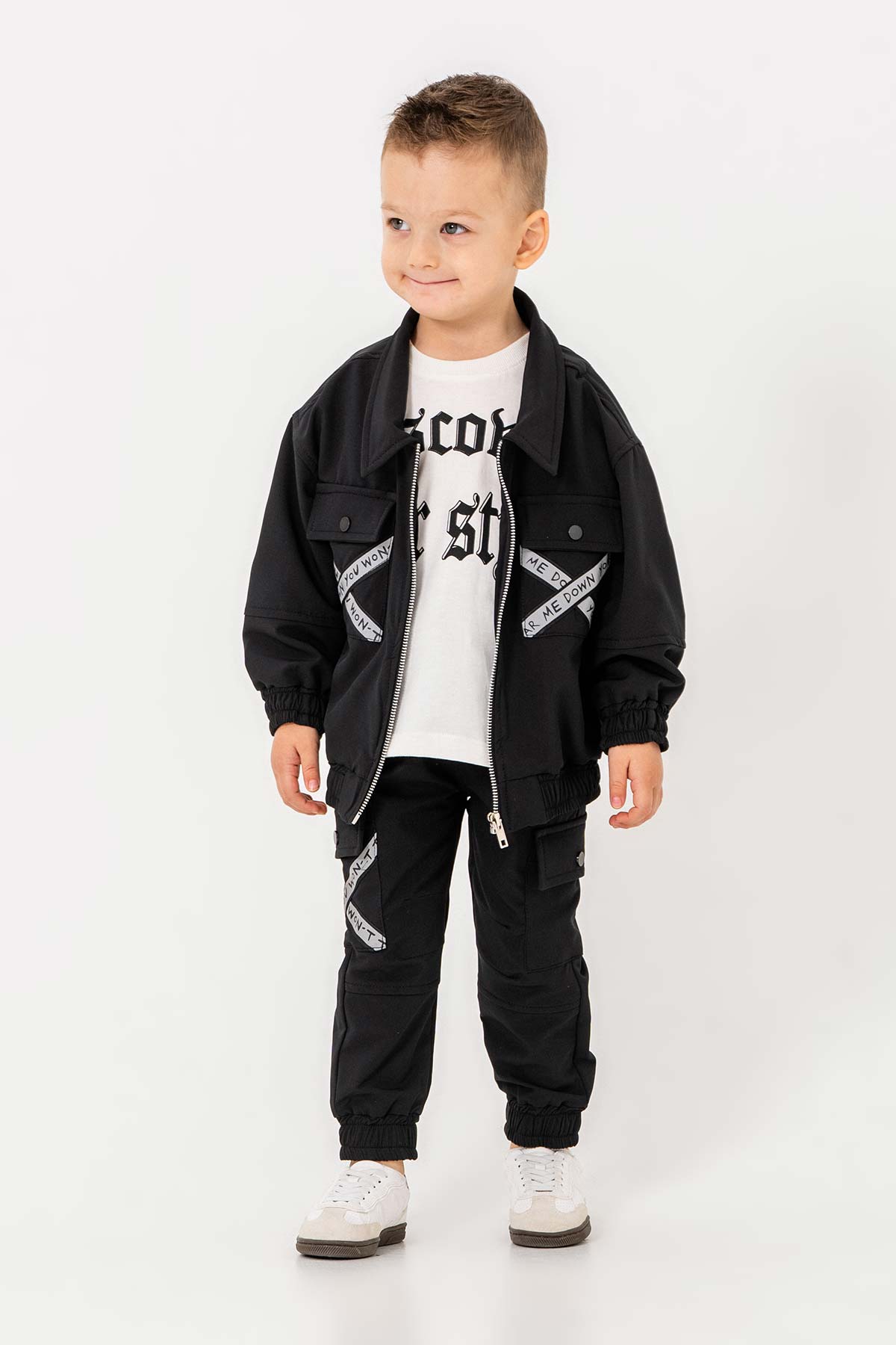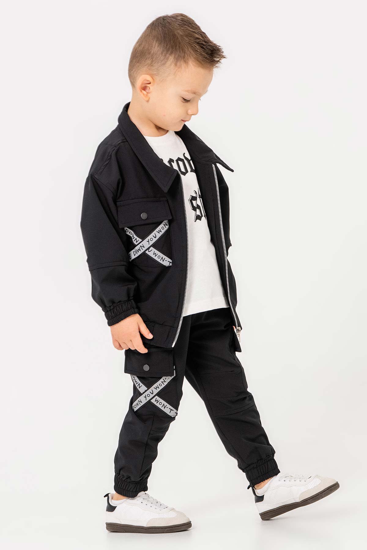 Gold Class Kidswear kalitesiyle tasarlanan bu özel takım, 2-5 yaş arası erkek çocuklar için şıklığı ve konforu bir araya getiriyor. %100 polyester, astarlı ve su geçirmez ceketiyle soğuk ve yağışlı havalarda çocuklarınızı korurken, şık tasarımıyla dikkat çeker. Çift göğüs cepli ceket, fermuarlı kapama ve göğsündeki X ve "Sport" şerit detaylarıyla dinamik bir görünüm sunar. Kolları ve beli lastikli yapısıyla hareket özgürlüğü sağlar.