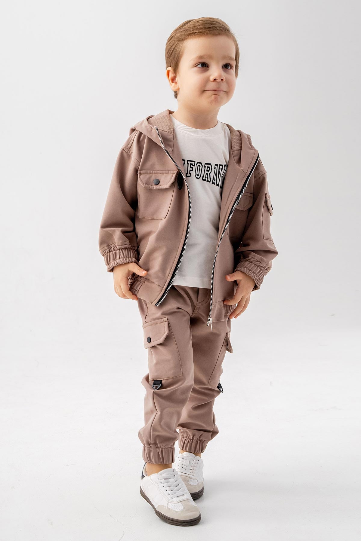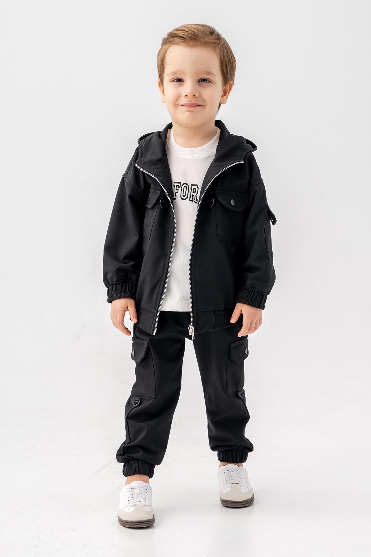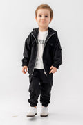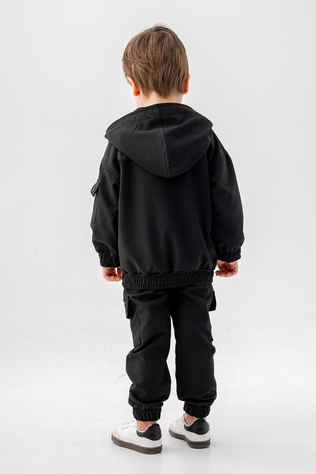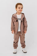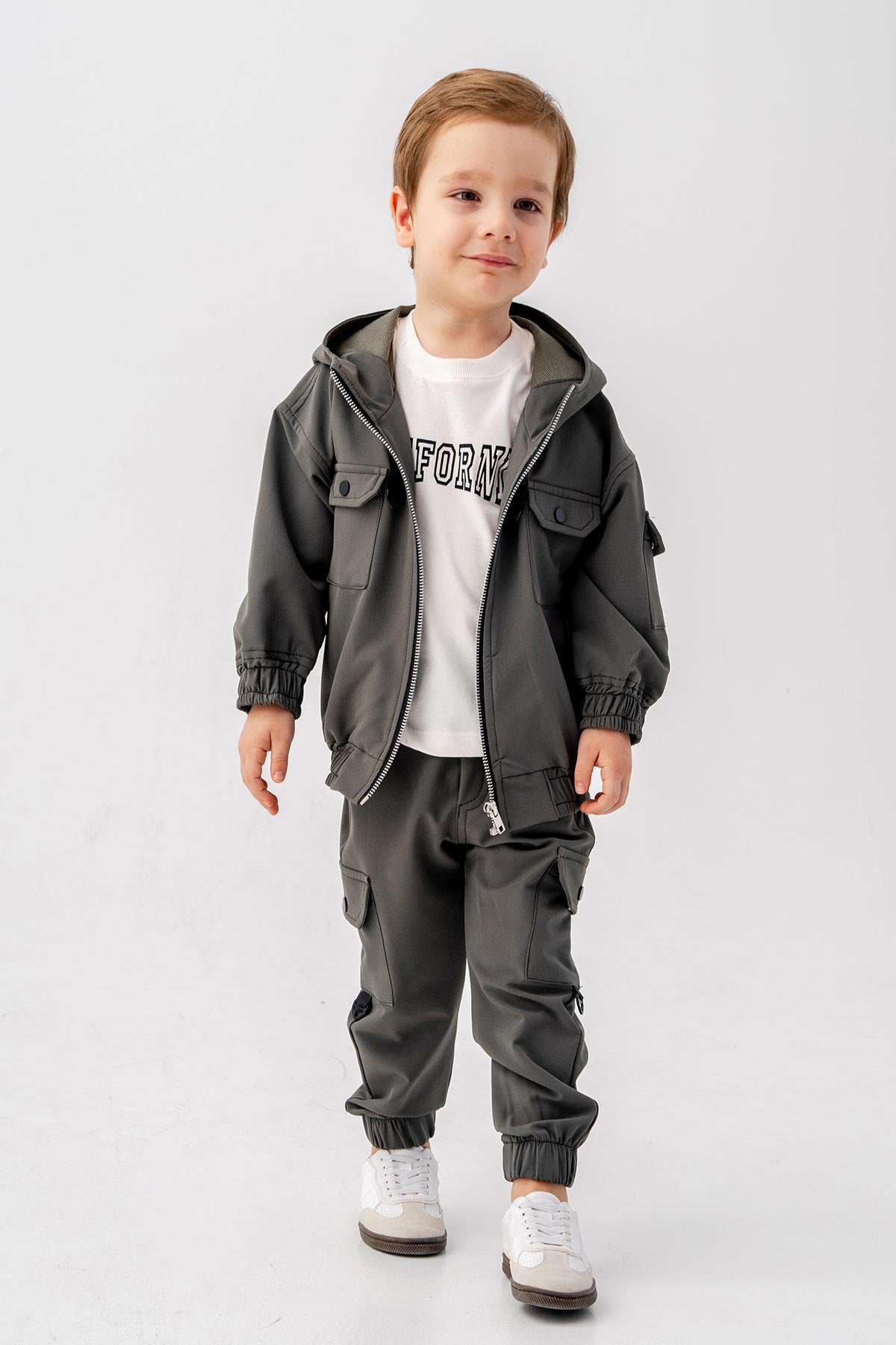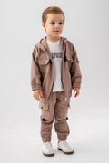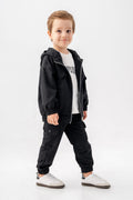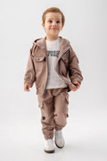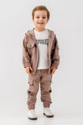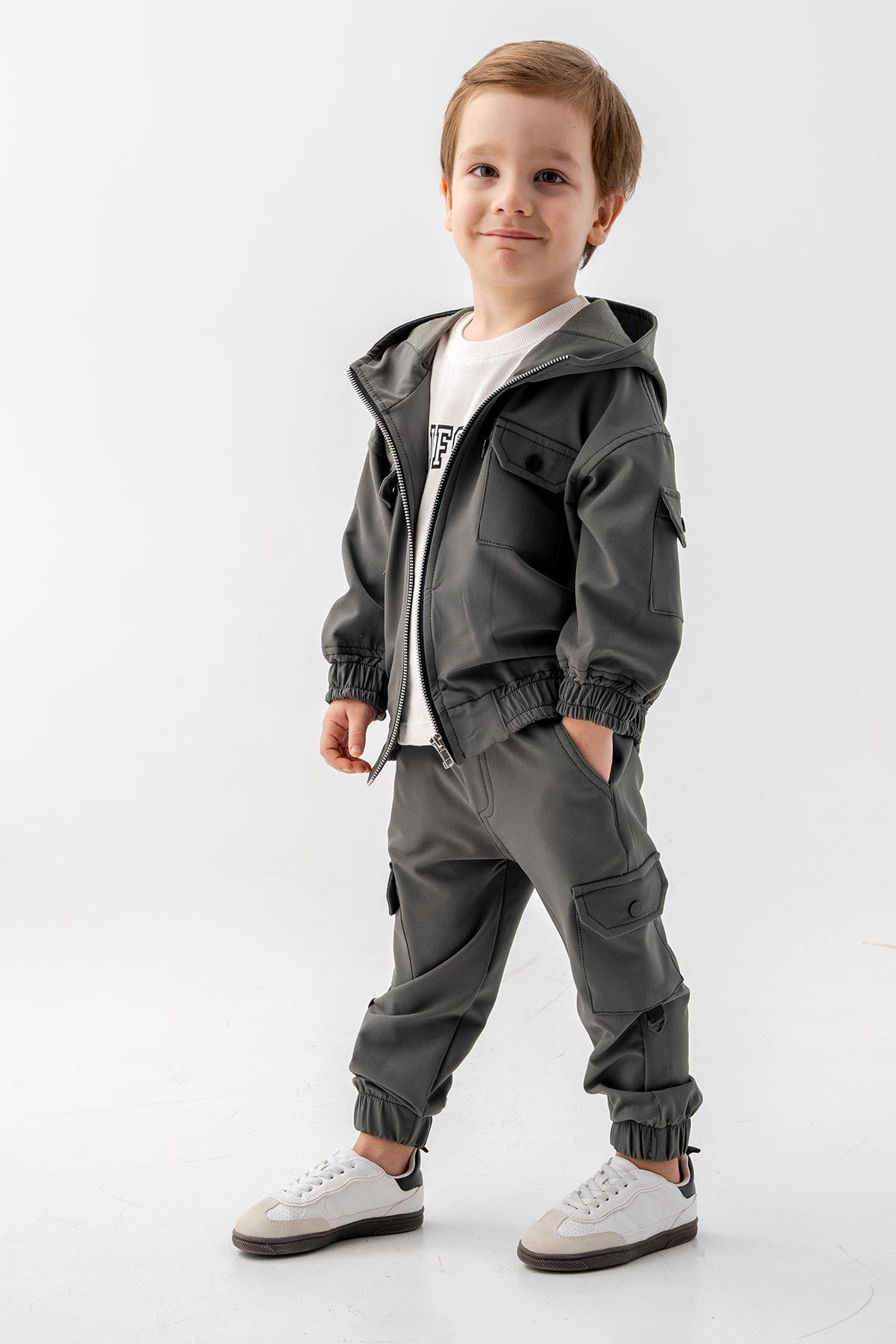 Çift Göğüs Cepli Body'li Kapüşonlu 3 Parça Erkek Çocuk Ceketli Takım