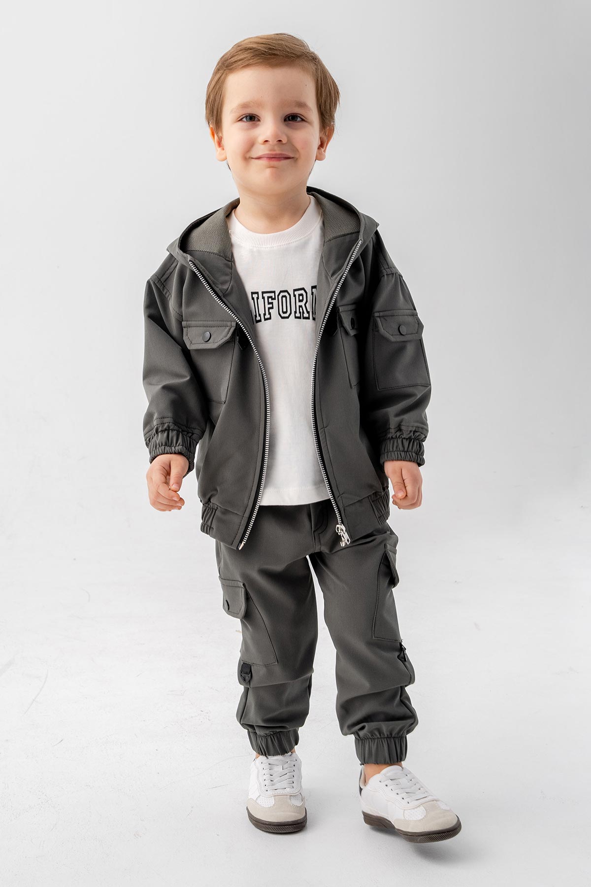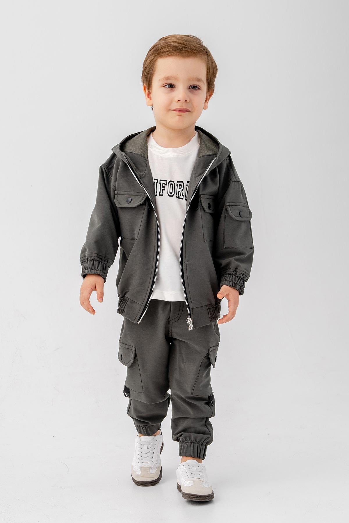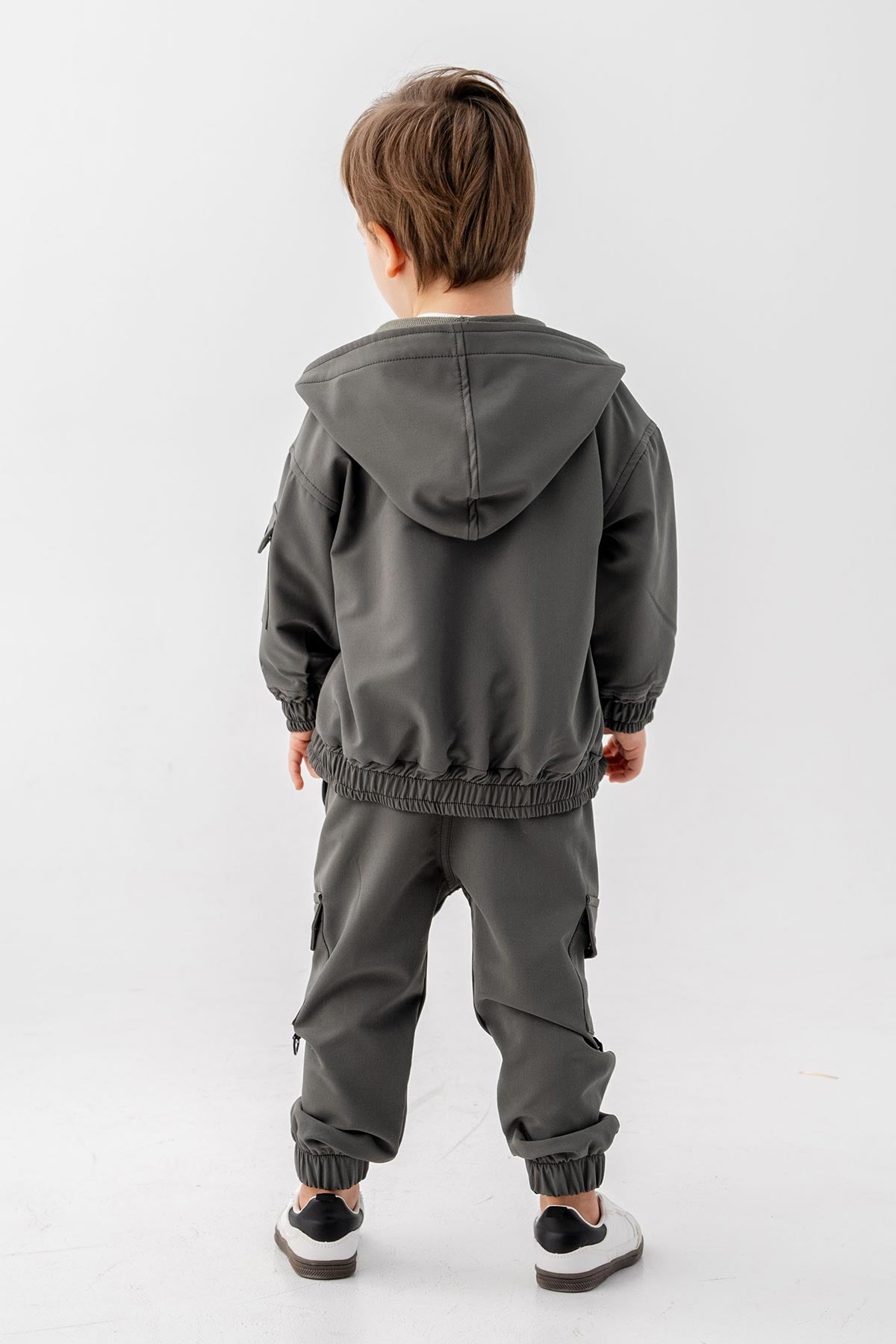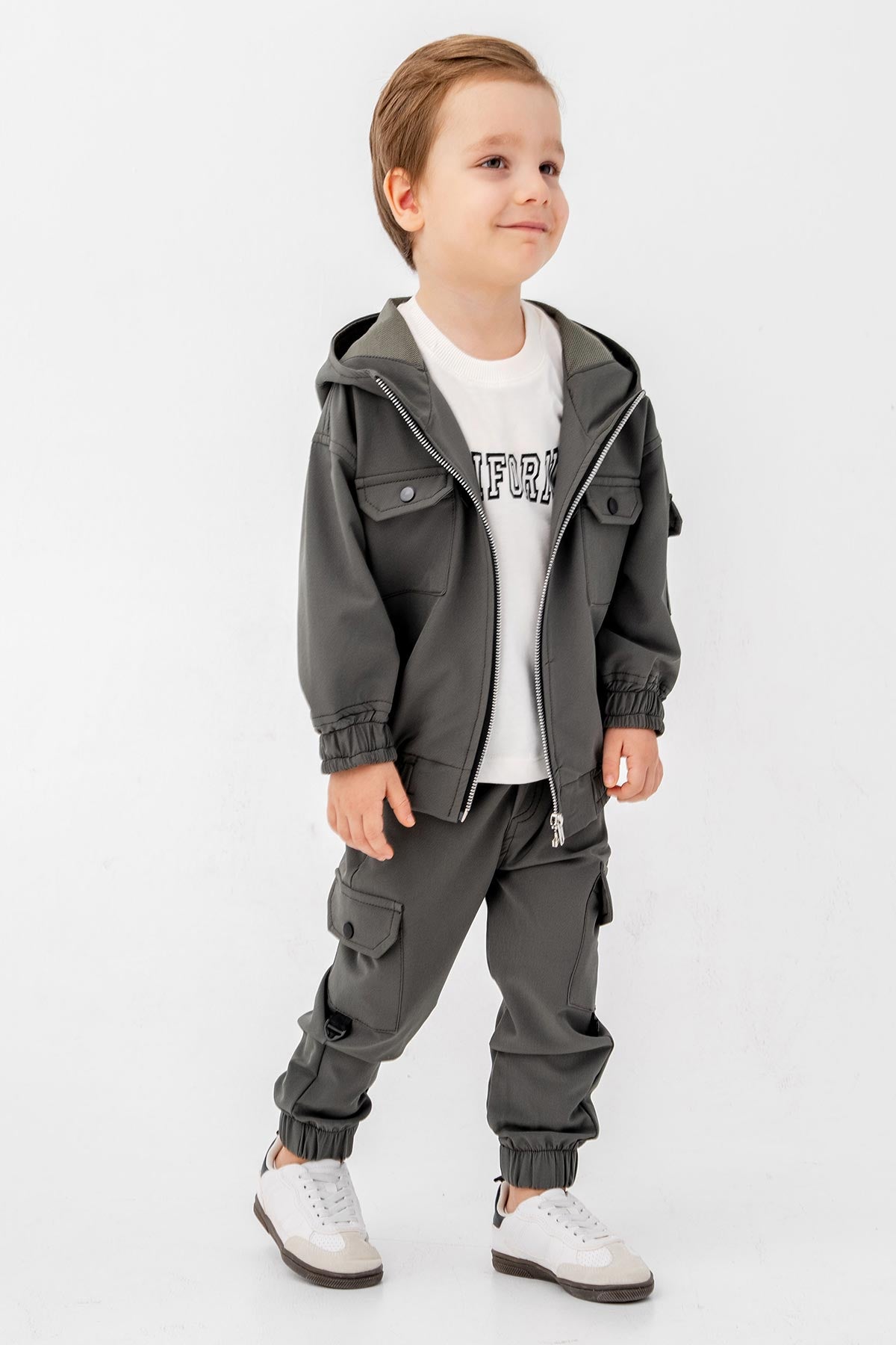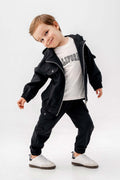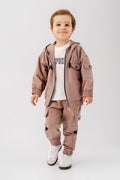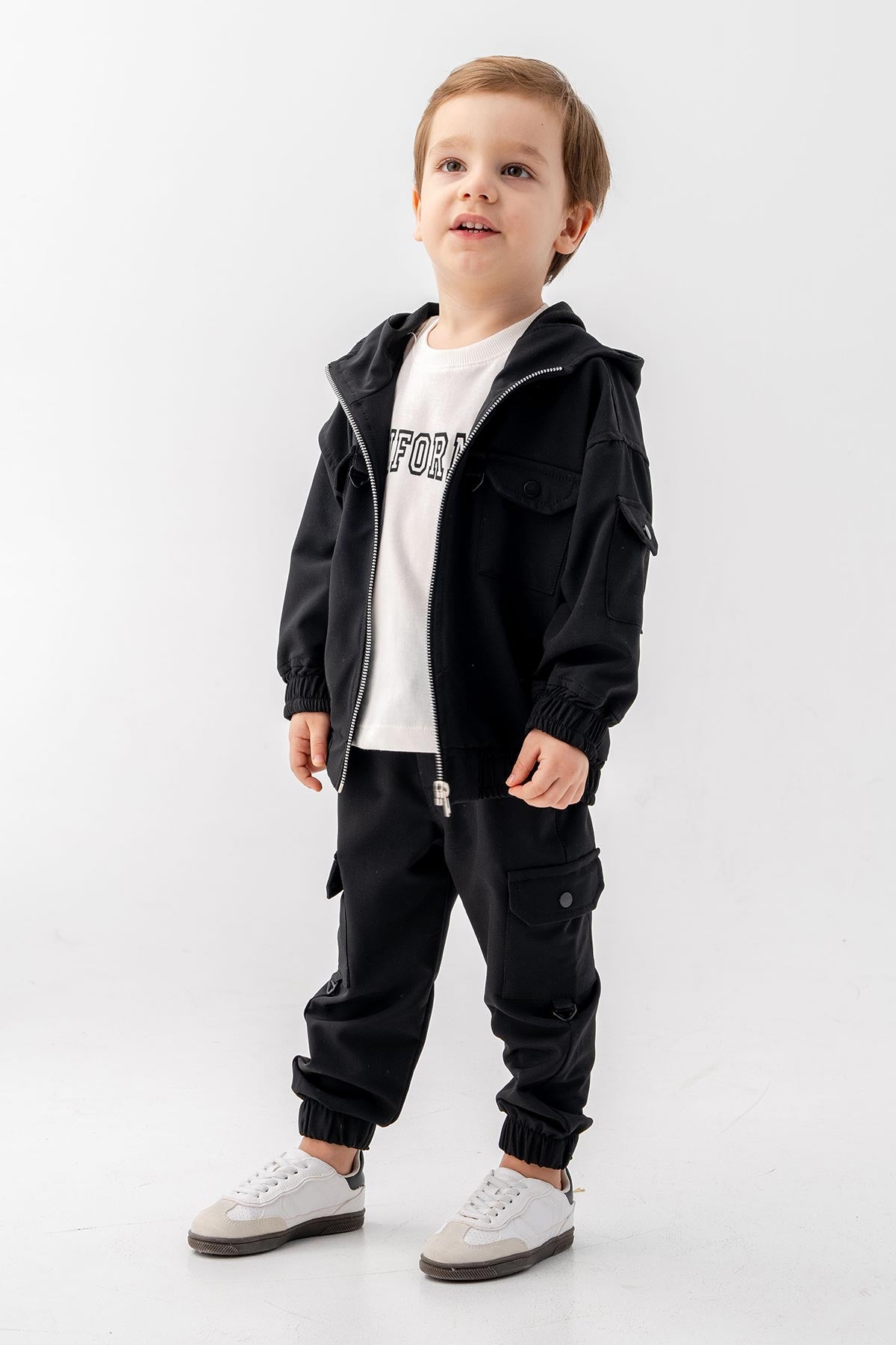 Çift Göğüs Cepli Body'li Kapüşonlu 3 Parça Erkek Çocuk Ceketli Takım