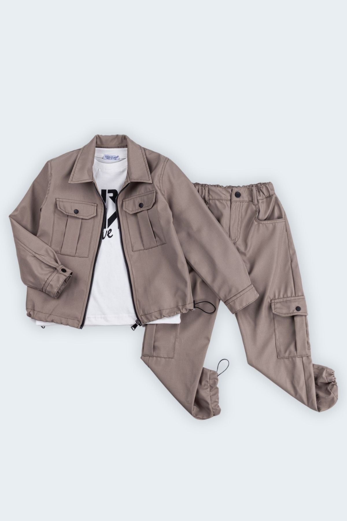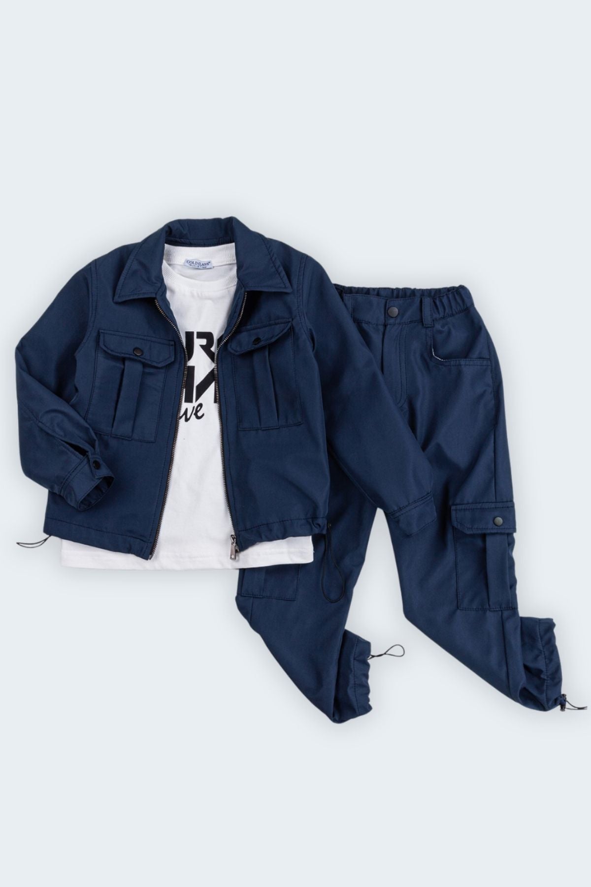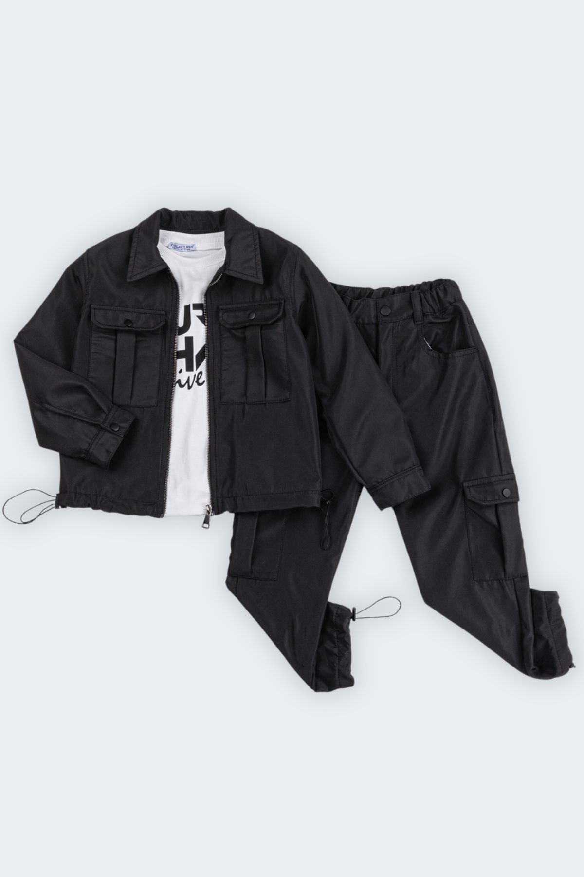 Çift Göğüs Cepli Su Geçirmez 3'lü Erkek Çocuk Ceketli Takım