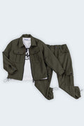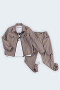 Ceket ve pantolon bonded kumaştan üretilmiştir ve su geçirmez özellikleri sayesinde çocuğunuzun her mevsim rahat etmesini sağlar. Ceketin gömlek yaka tasarımı, şıklık ve rahatlık arayan aileler için idealdir. Fermuarlı kapama sistemi ve çıtçıtlı göğüs cepleri, kullanımı pratik hale getirirken, kollarındaki çıtçıtlı detaylar da ekstra konfor sunar.