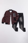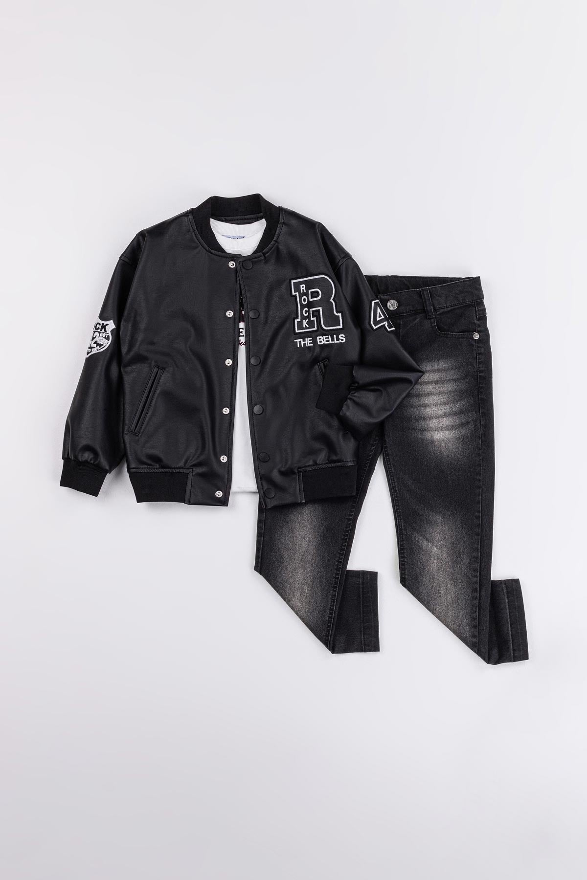 Çıtçıtlı Astarlı Rock Nakışlı Deri 3'lü Erkek Çocuk Ceketli Takım