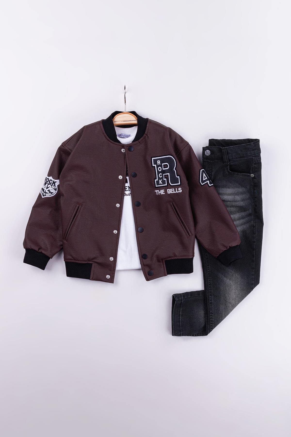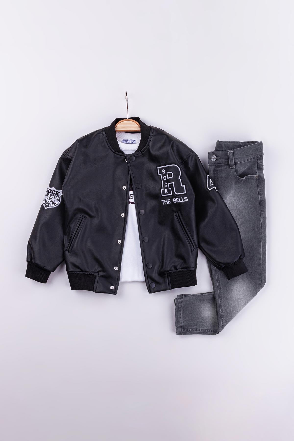 Gold Class Kidswear markasının özel ürünü olan Çıtçıtlı Astarlı Rock Nakışlı Deri 3'lü Erkek Çocuk Ceketli Takımı, küçük beylerin tarzını yansıtan bir seçenektir. Bu şık takım, deri ceket, pantolon ve tişörtten oluşmaktadır.