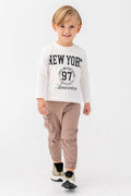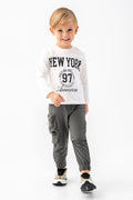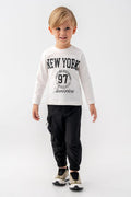 Takımın beyaz, baskılı, uzun kollu body’si %100 pamuktan üretilmiştir ve çocukların hassas ciltlerine uygun yumuşak bir dokuya sahiptir.