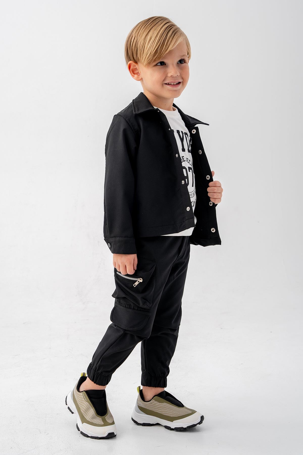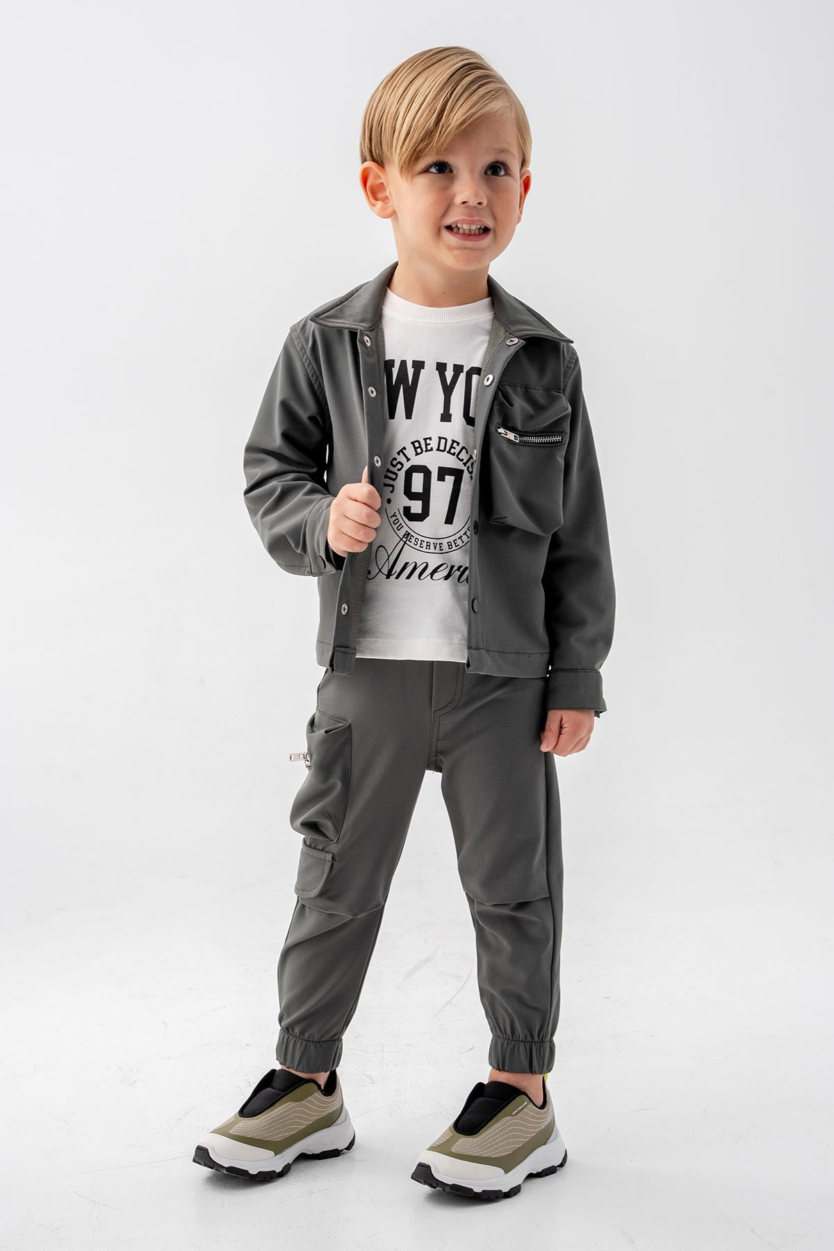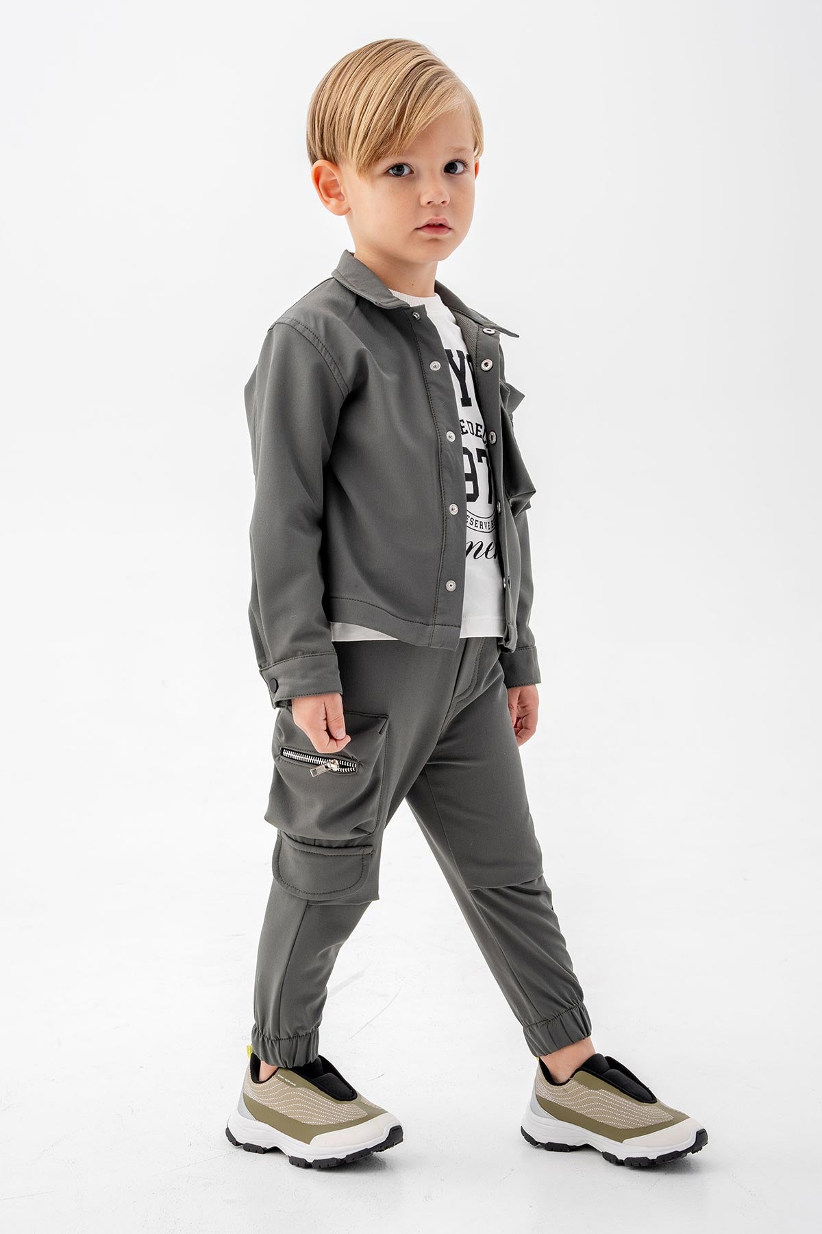 Çıtçıtlı Balon Cepli 3 Parça Erkek Çocuk Ceketli Takım