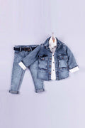 Düğmeli Körüklü Cepli Pamuklu 4'lü Erkek Çocuk Kot Takım