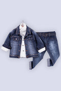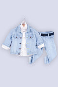 Düğmeli Süs Cepli Gömlekli 4'lü Erkek Çocuk Kot Takım