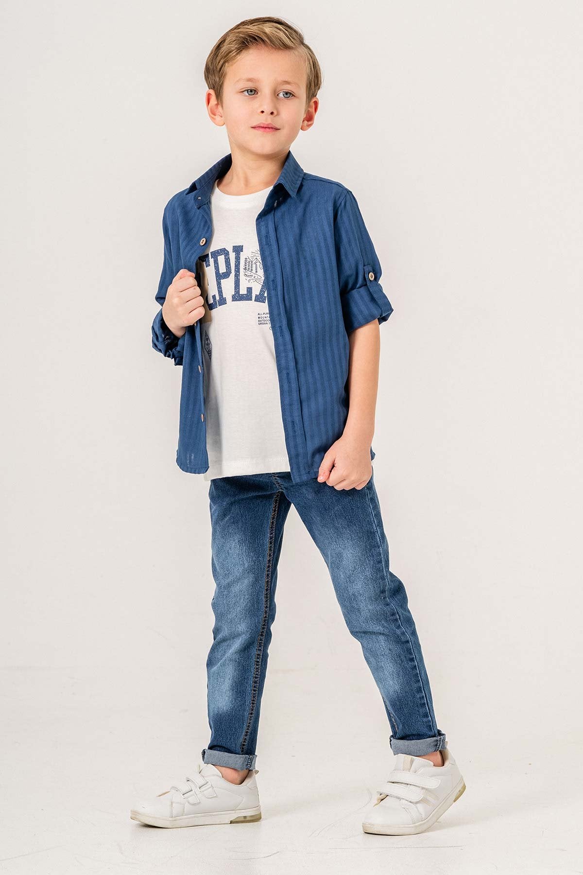 Erkek Çocuk Ayarlanabilir Kol Düğmeli 3 Parça Gömlekli Takım