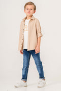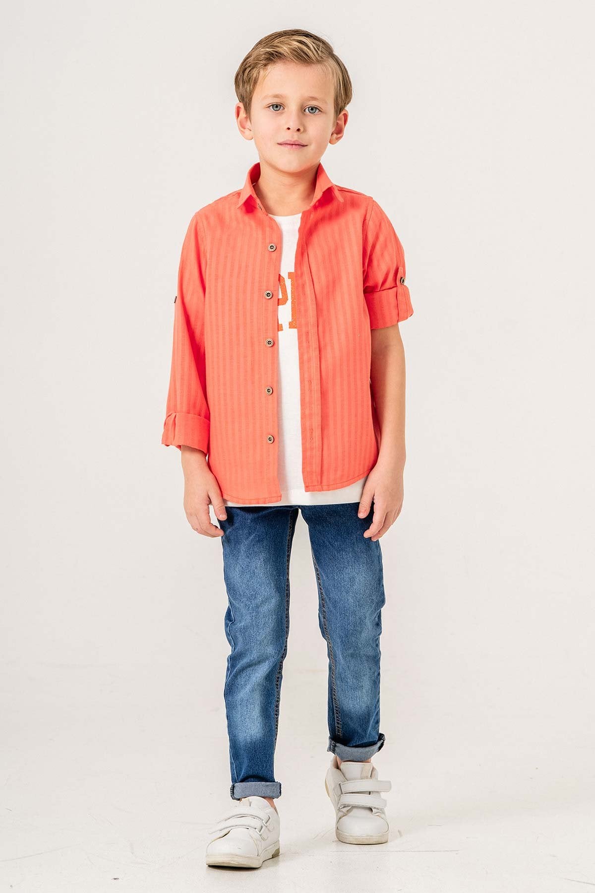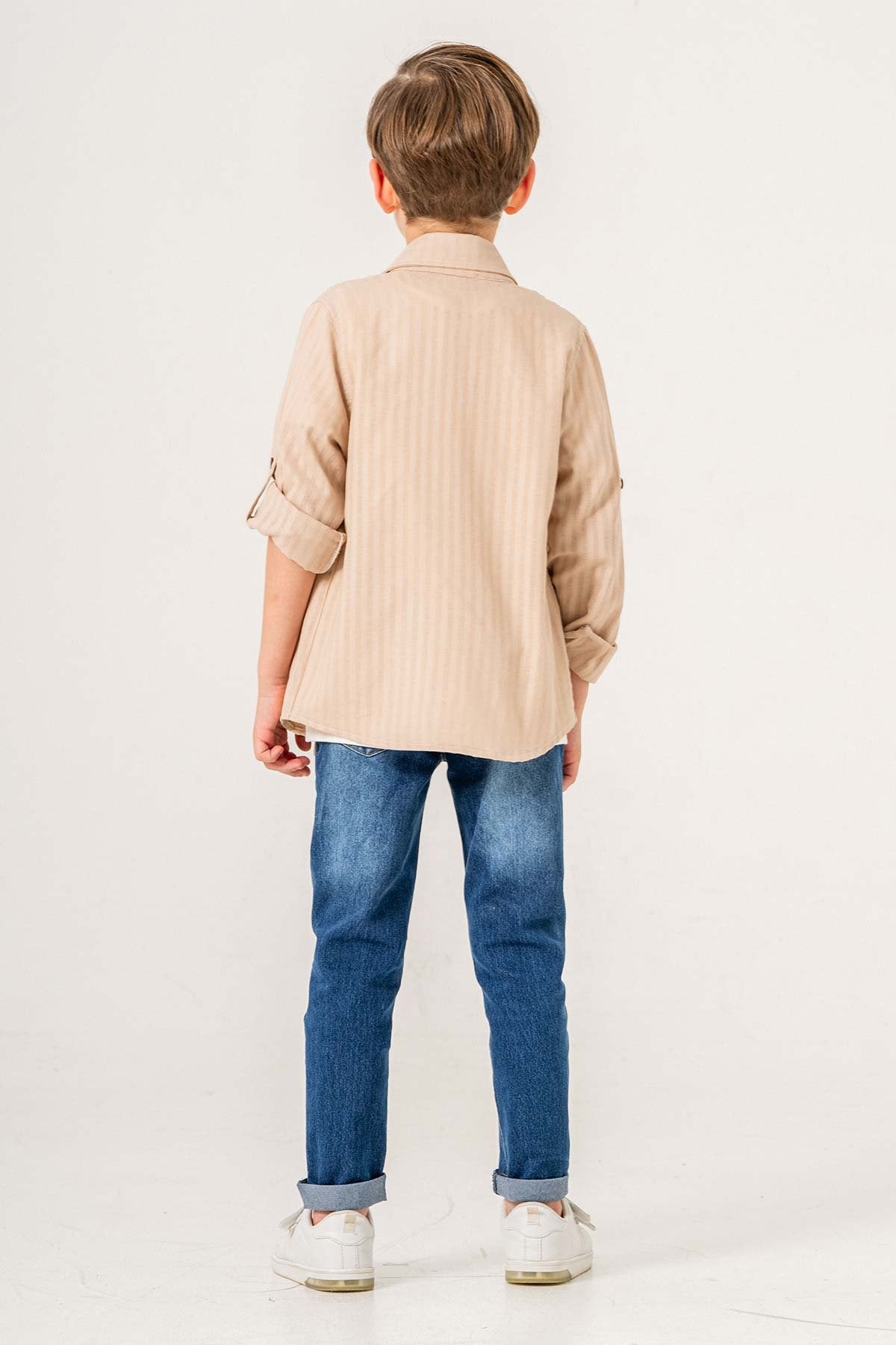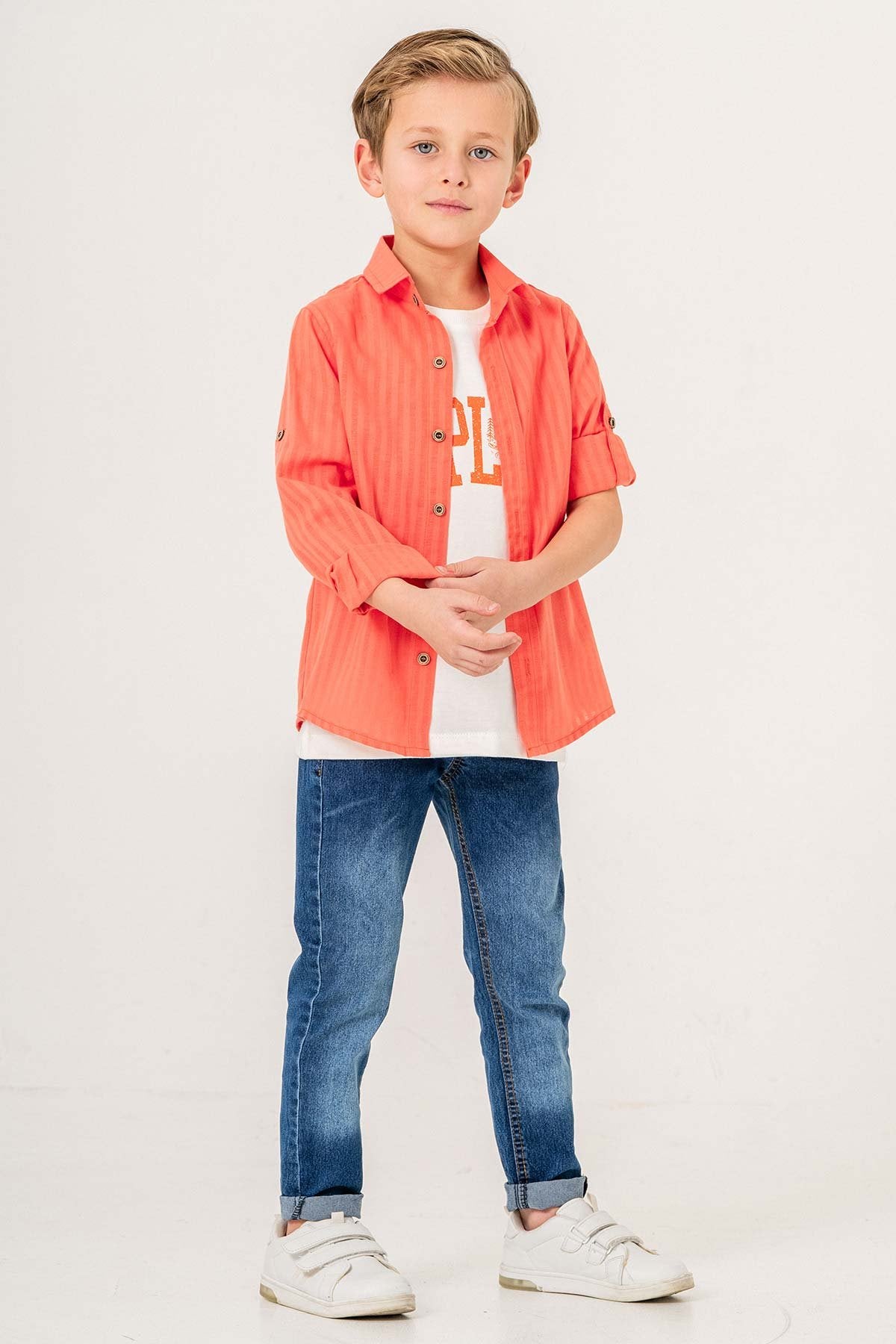 Erkek Çocuk Ayarlanabilir Kol Düğmeli 3 Parça Gömlekli Takım, çocukların rahatça hareket edebilmesi için esnek yapısıyla tasarlanmış olup, aynı zamanda modern bir görünüm sunar. Özel kumaş kalitesi ve ince detayları sayesinde çocuğunuz her ortamda dikkat çekecek!