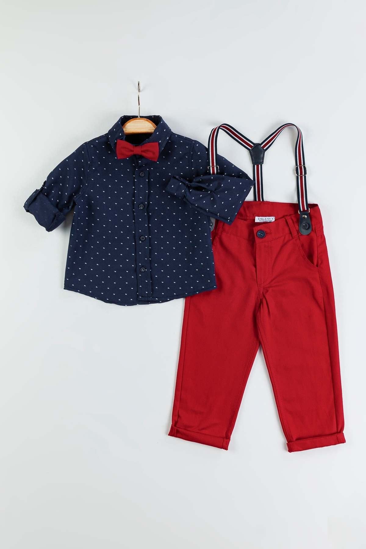 Pantolon, gömlek, salopet ve papyondan oluşan bu takım; yılbaşı, mezuniyet, doğum günü gibi özel etkinlikler için en uygun tercihtir. Pamuklu kumaşları sayesinde rahat bir deneyim sunan ürünümüz, çok sevilen ve tercih edilen yaprak desenli salopetli takımımızın yeni renkleri ile üretildi.