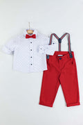 Cepli pantolonu, papyon ile kombinlenen gömleği ve salopet askısı ile Erkek Çocuk Yaprak Desenli Salopetli Gömlekli Takımımız, Gold Class Store mağazalarında şık ve tarz sahibi küçük beyefendileri bekliyor!