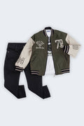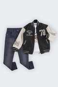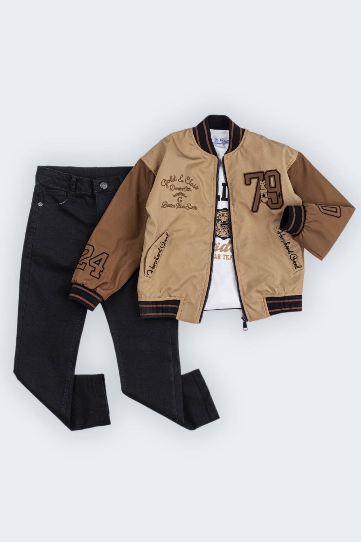 Fermuarlı Çift Cepli Nakış Süslemeli Astarlı 3'lü Erkek Çocuk Ceketli Takım