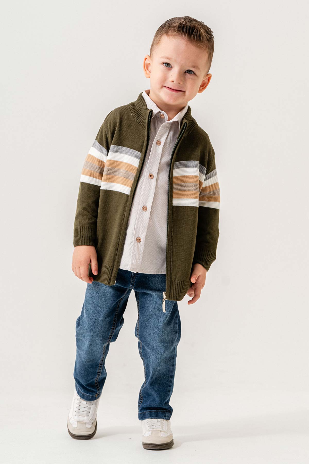Gold Class Kidswear kalitesiyle tasarlanan Fermuarlı Dik Yaka Akrilik 3 Parça Erkek Çocuk Triko Takım, 2-5 yaş arası erkek çocuklar için hem şık hem de konforlu bir seçenek sunuyor. Günlük kullanımda ve özel günlerde tercih edilebilecek bu takım, üstün kumaş kalitesi ve modern detaylarıyla dikkat çekiyor.