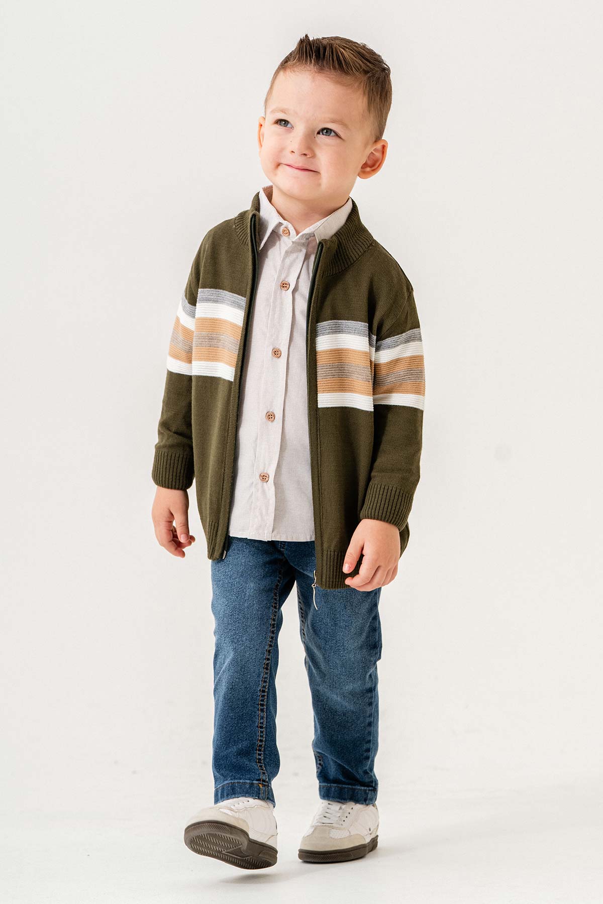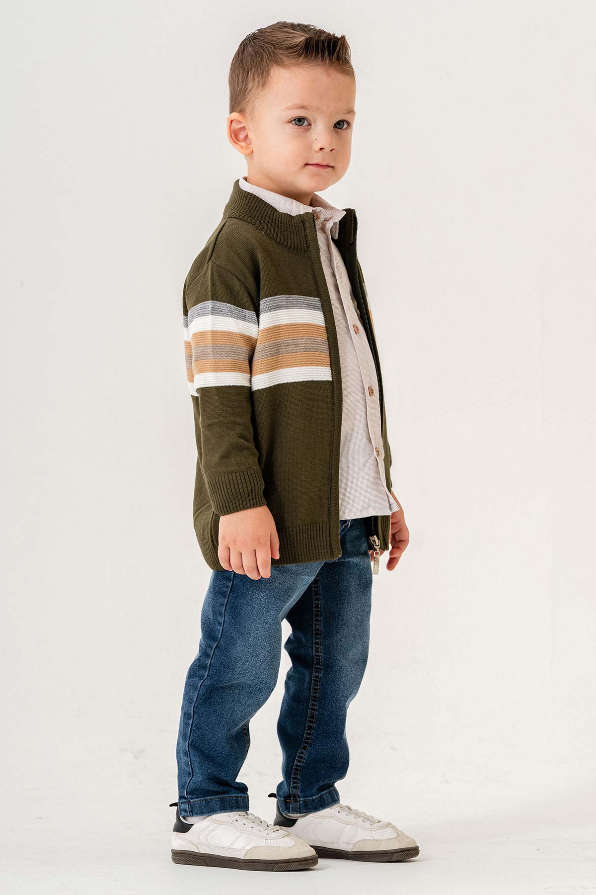 Fermuarlı Dik Yaka Akrilik 3 Parça Erkek Çocuk Triko Takım