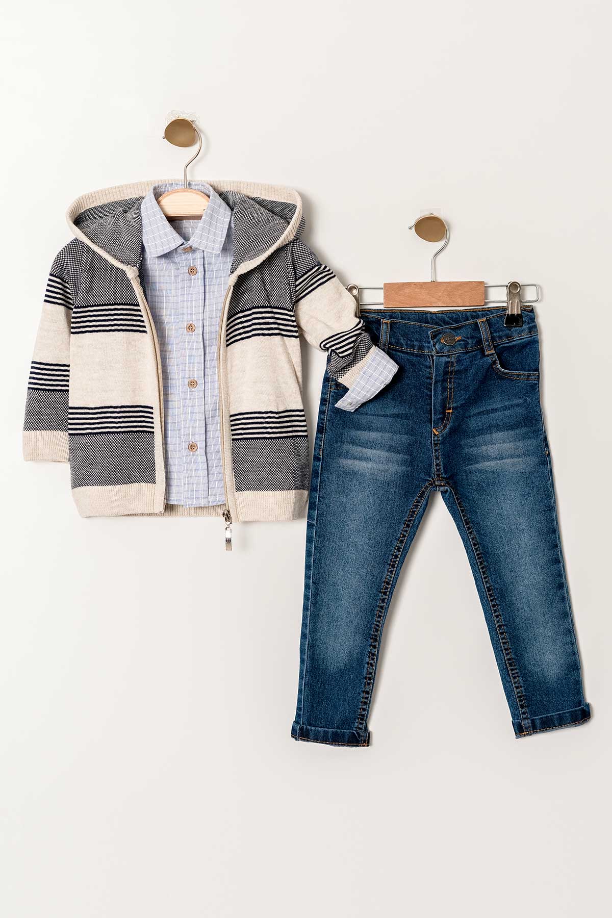 Fermuarlı Kapüşonlu Akrilik 3 Parça Erkek Çocuk Triko Takım