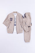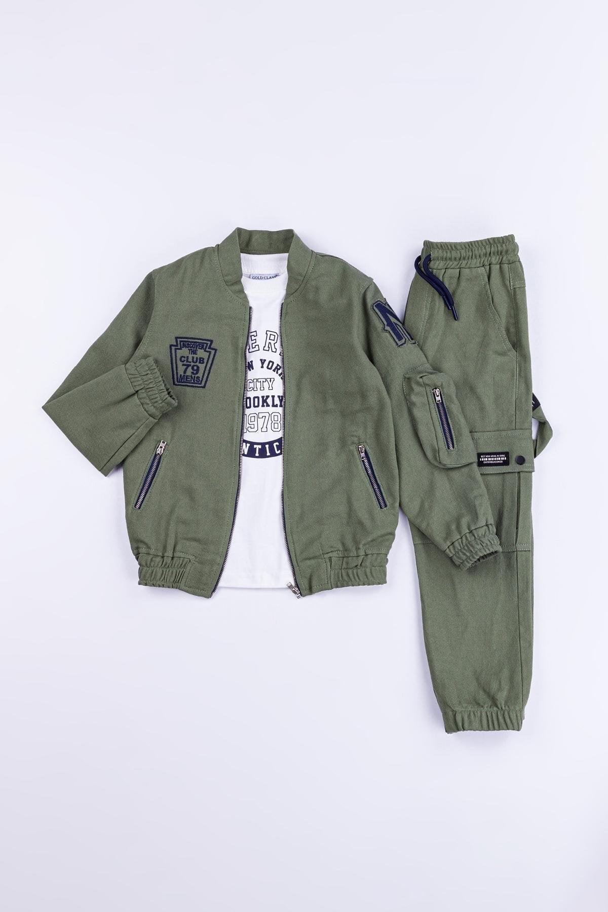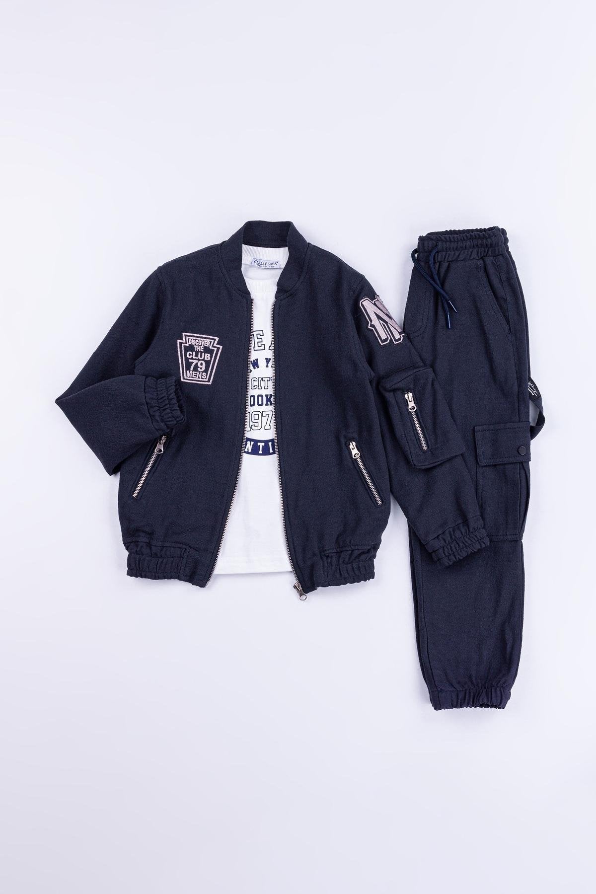 Fermuarlı Nakışlı %100 Pamuk Keten 3 Parça Erkek Çocuk Ceketli Takım