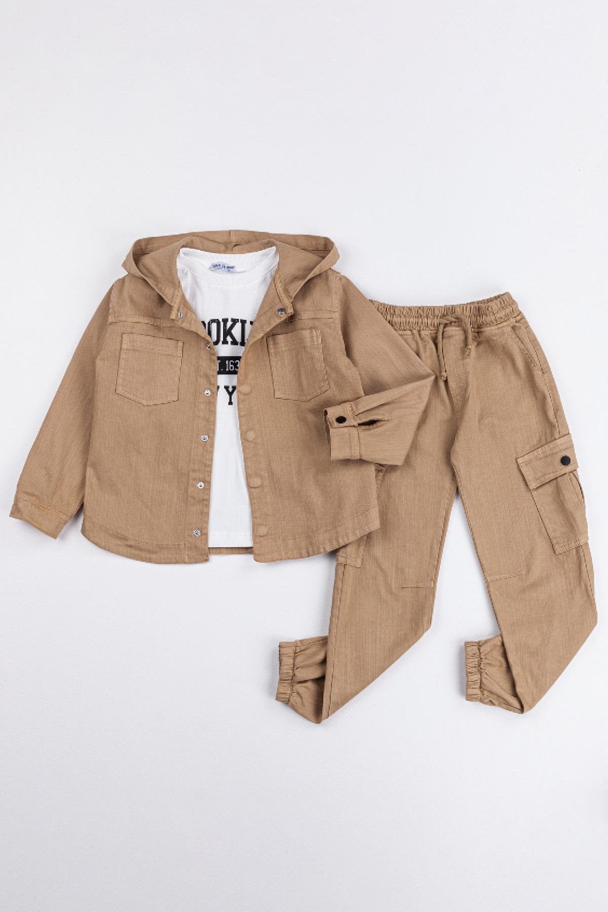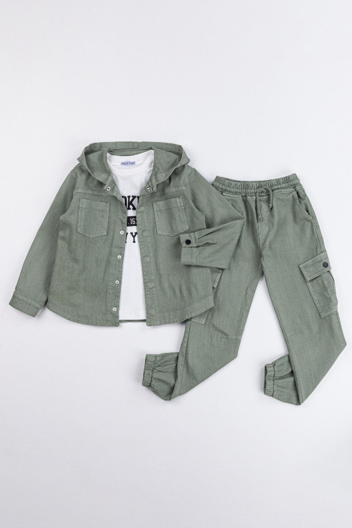 Gizli Çıtçıtlı Kapüşonlu Cepli Gabardin 3'lü Erkek Çocuk Ceketli Takım