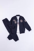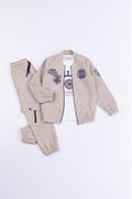 Gold Class Nakışlı Cepli Fermuarlı Keten 3 Parça Erkek Çocuk Ceketli Takım