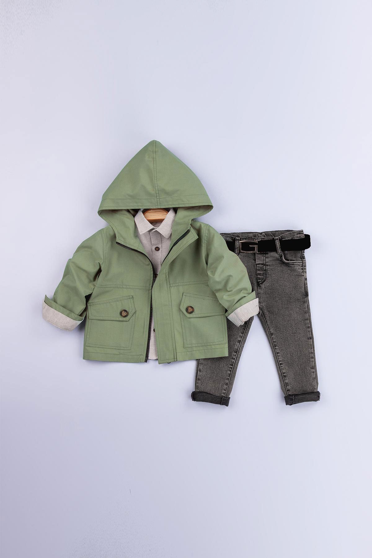 Kapüşonlu Cepli Fermuarlı Erkek Çocuk Trençkot Takım