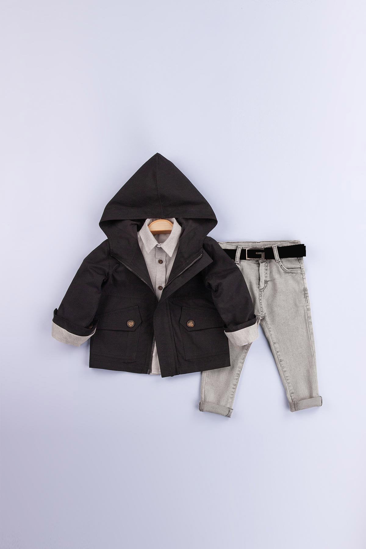 Gold Class Kidswear'un Kapüşonlu Cepli Fermuarlı Erkek Çocuk Trençkot Takımı, çocuklarınızın tarzını ve konforunu bir araya getiriyor. Pamuklu malzemelerden üretilen bu takım, sağlıklı ve rahat bir giyim deneyimi sunar. Kapüşonlu tasarımı, hava koşullarına karşı ekstra koruma sağlarken fermuarlı kapama sistemi, giyimde kolaylık sağlar.