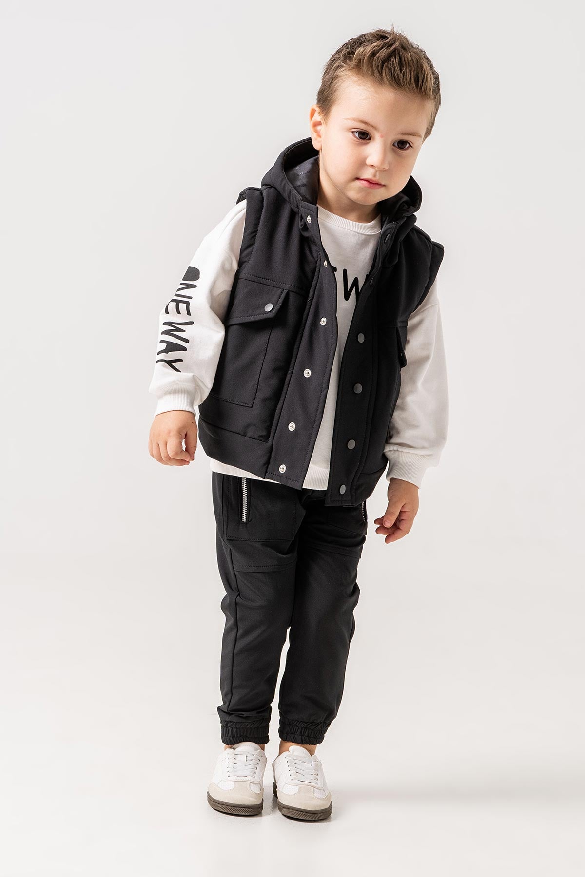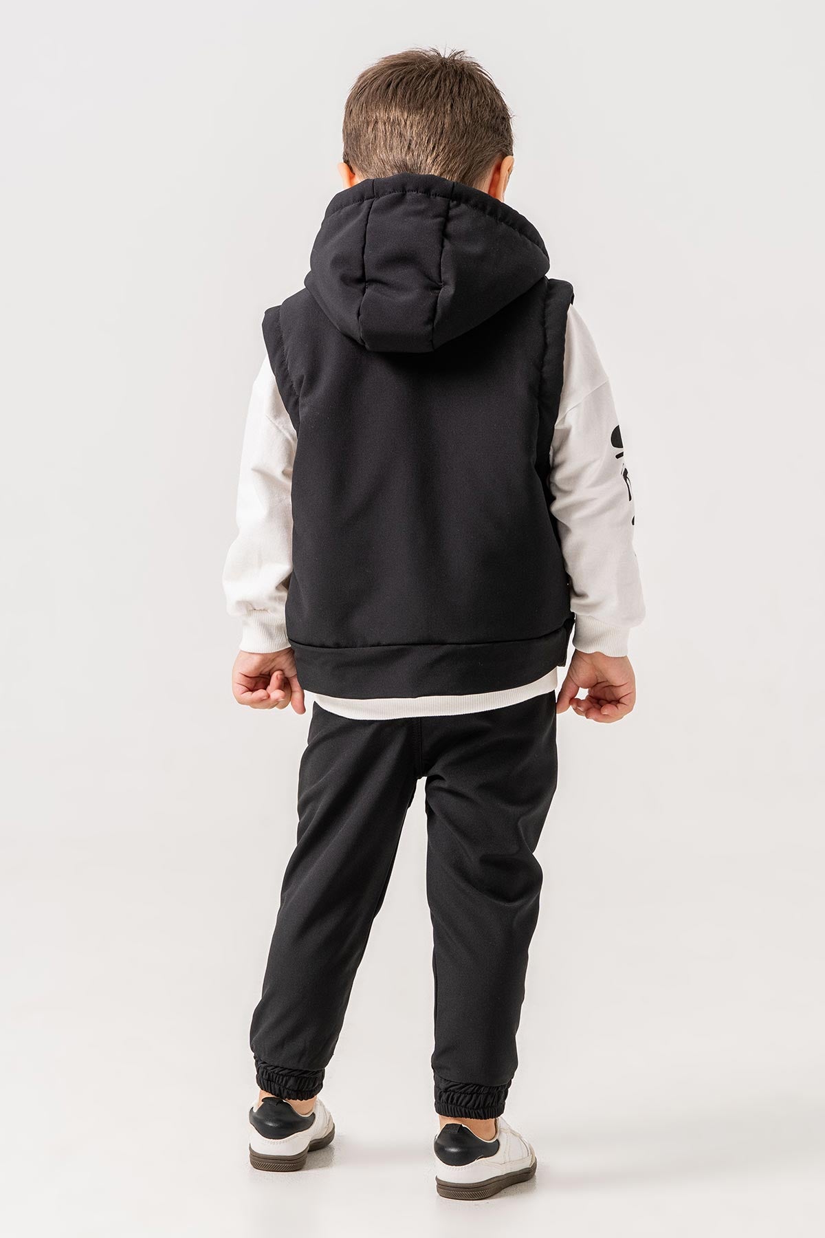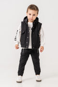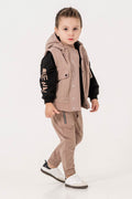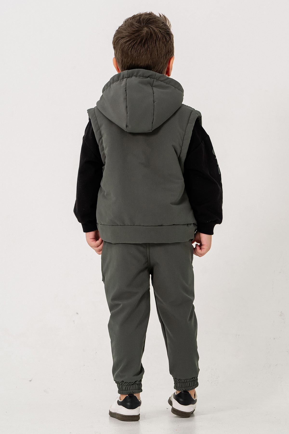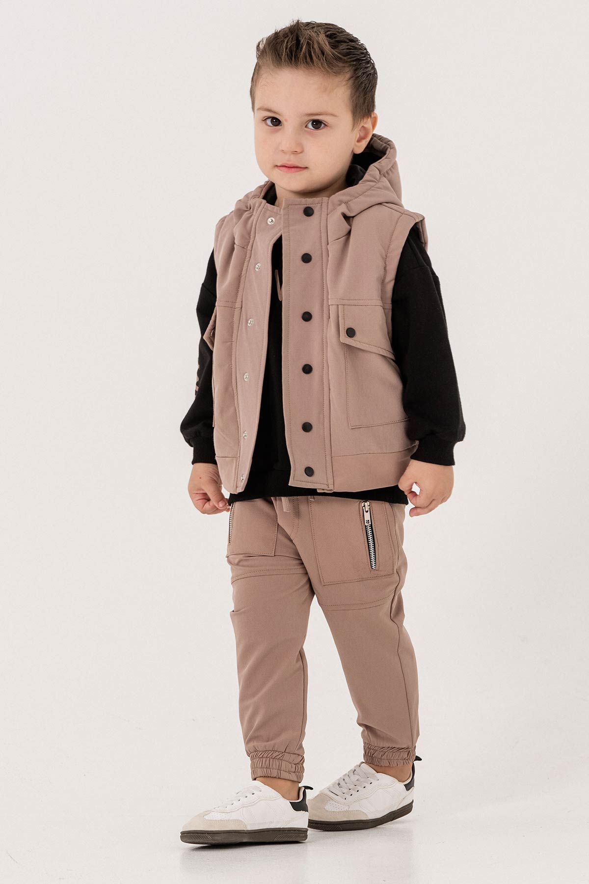 Kapüşonlu Çift Cepli Su Geçirmez 3 Parça Erkek Çocuk Yelekli Takım