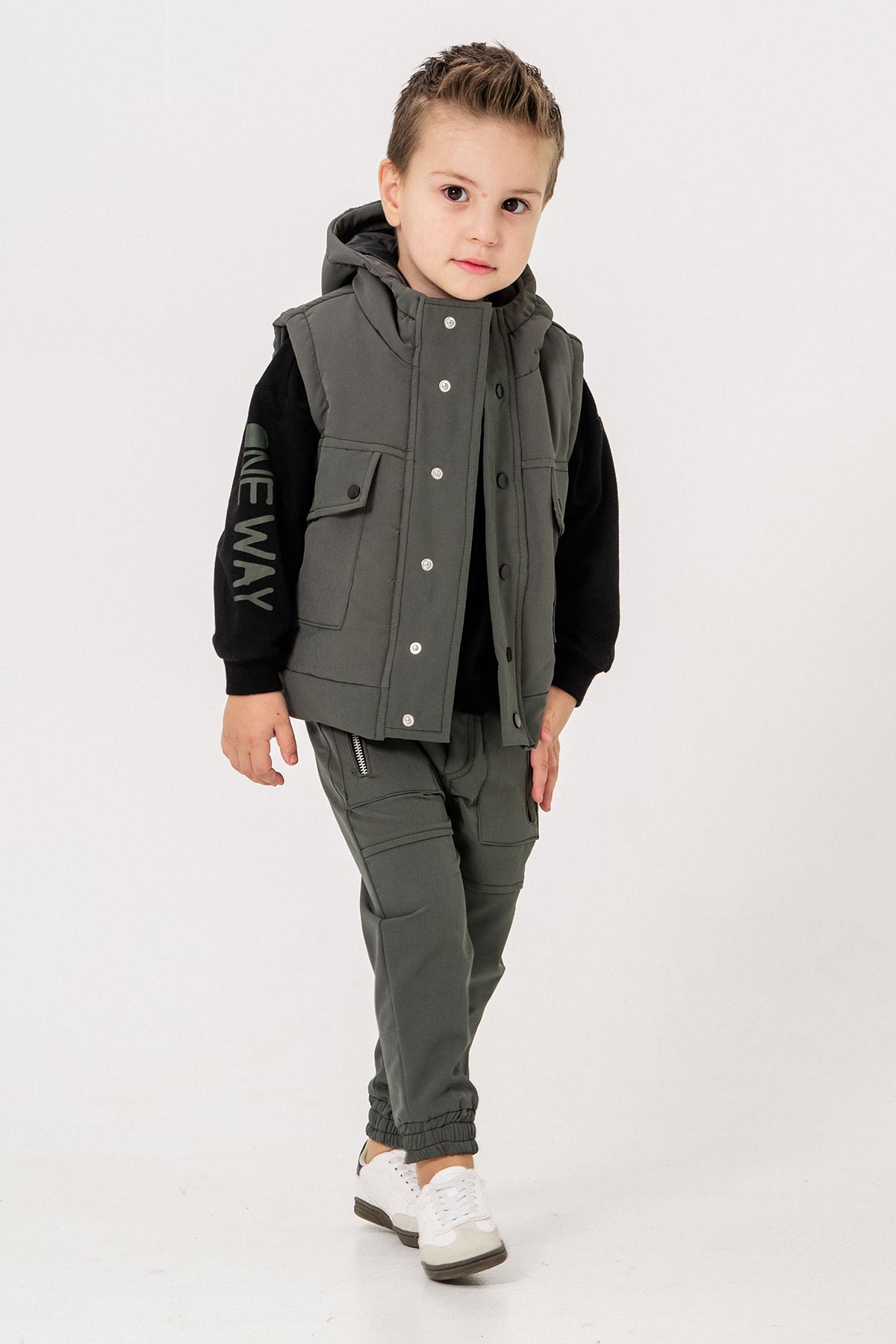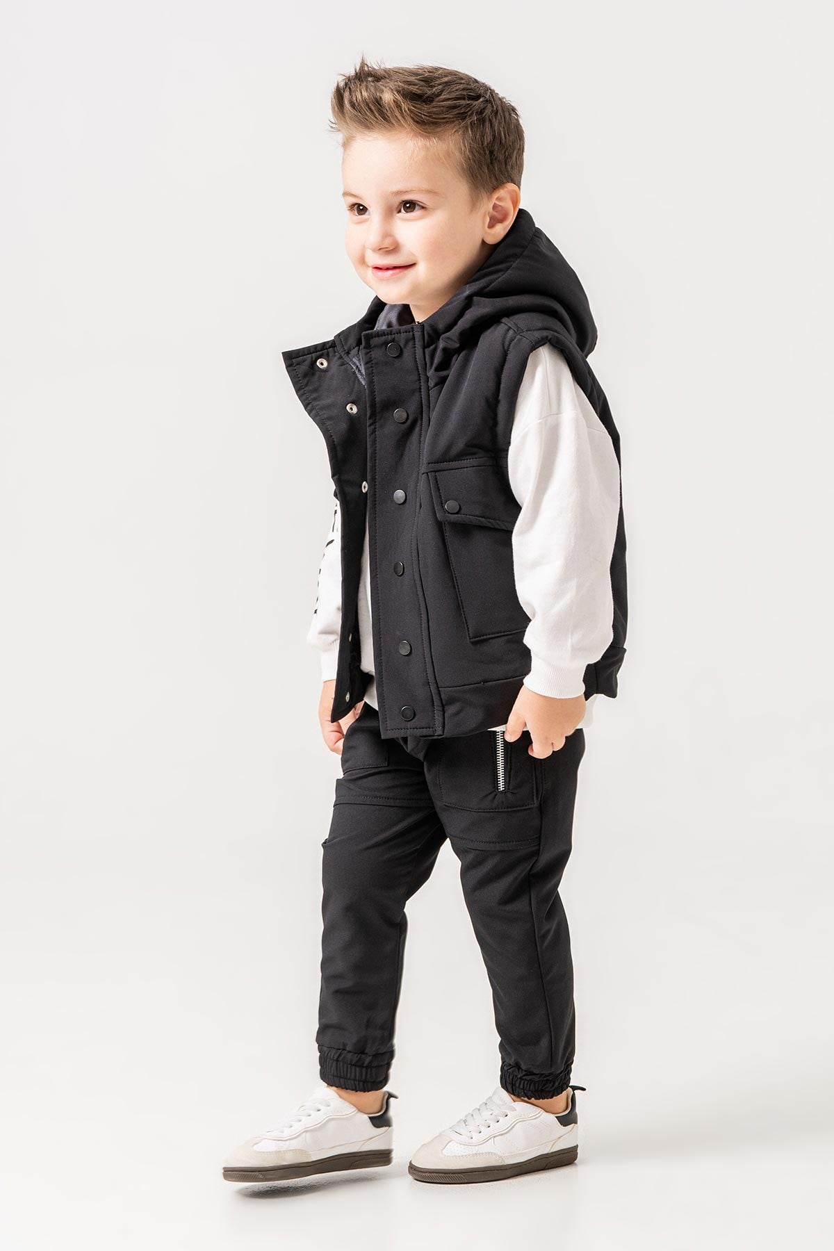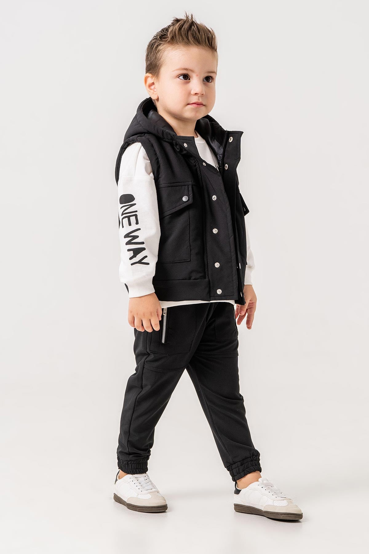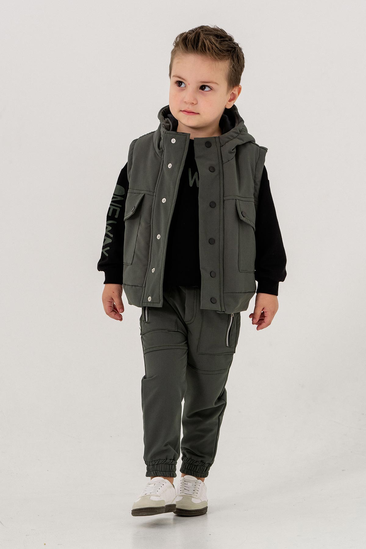 Kapüşonlu Çift Cepli Su Geçirmez 3 Parça Erkek Çocuk Yelekli Takım