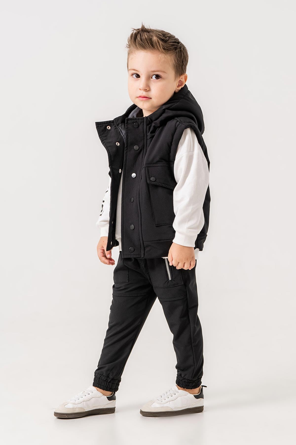 Gold Class Kidswear, çocukların konforunu ve şıklığını bir araya getiren Kapüşonlu Çift Cepli Su Geçirmez 3 Parça Erkek Çocuk Yelekli Takım ile 2-5 yaş arası erkek çocuklar için özel bir seçenek sunuyor. %100 polyesterden üretilmiş, kapüşonlu ve çift cepli yelek, su geçirmez özelliğiyle dış mekan aktiviteleri için idealdir. Astarlı tasarımı sayesinde rahatlık sağlar, çıtçıtlı kapama sistemiyle pratik kullanım sunar.