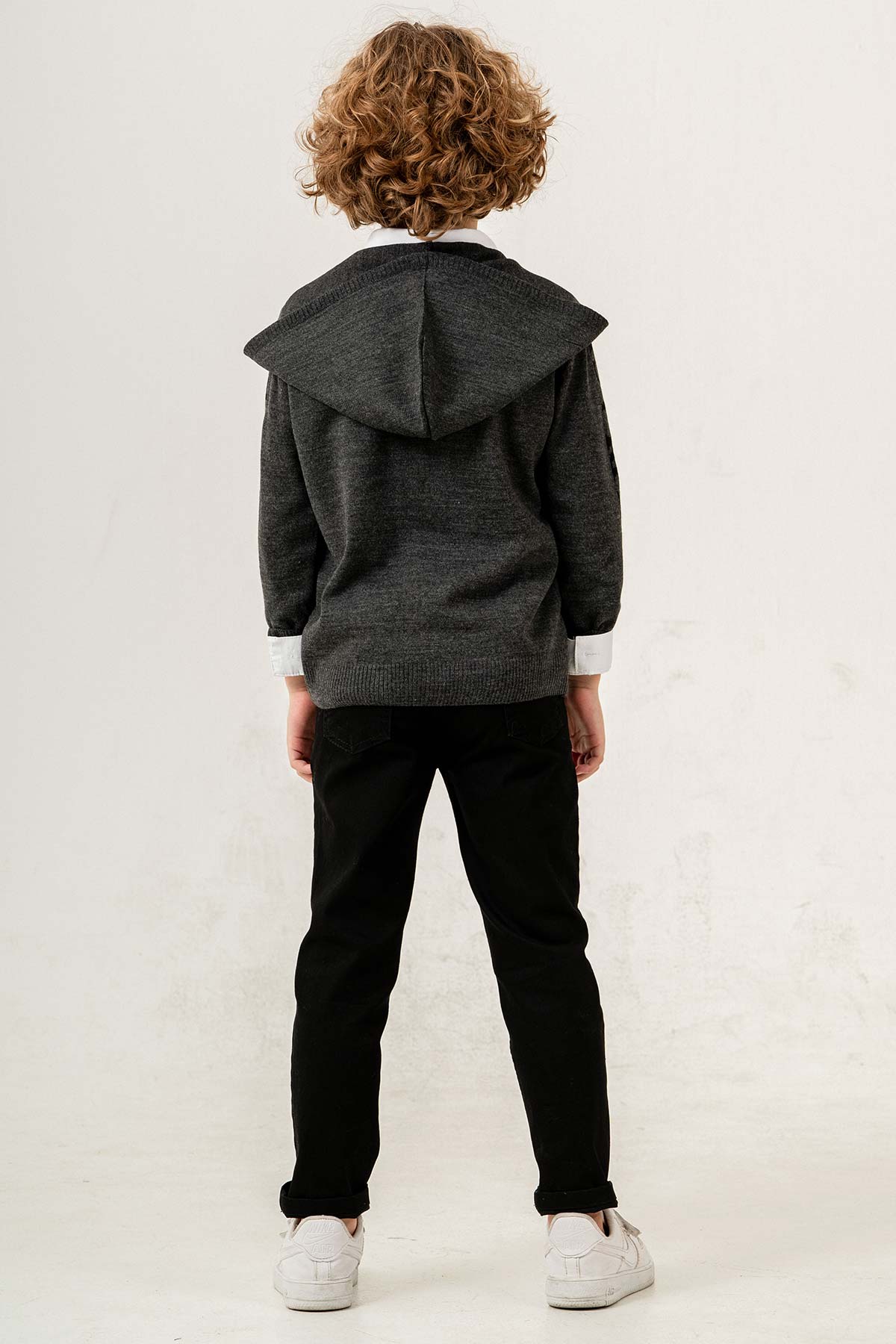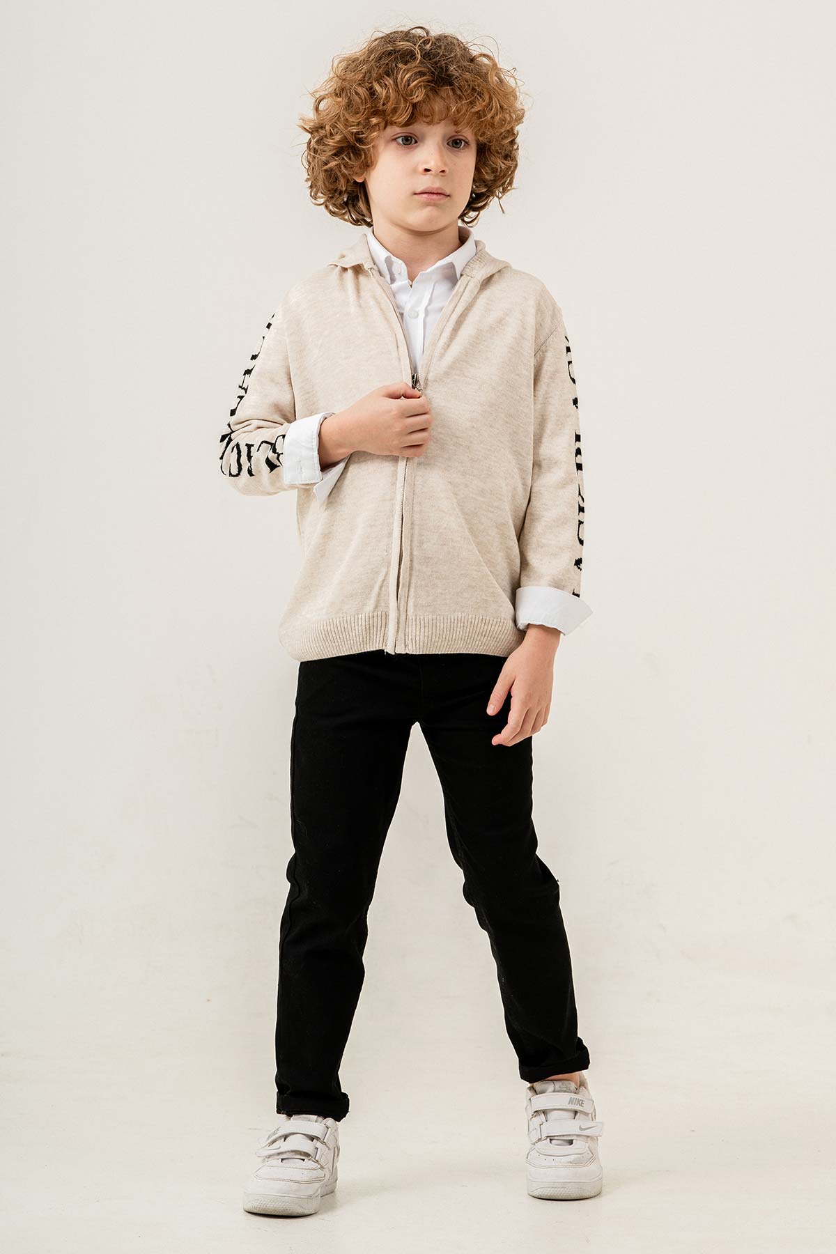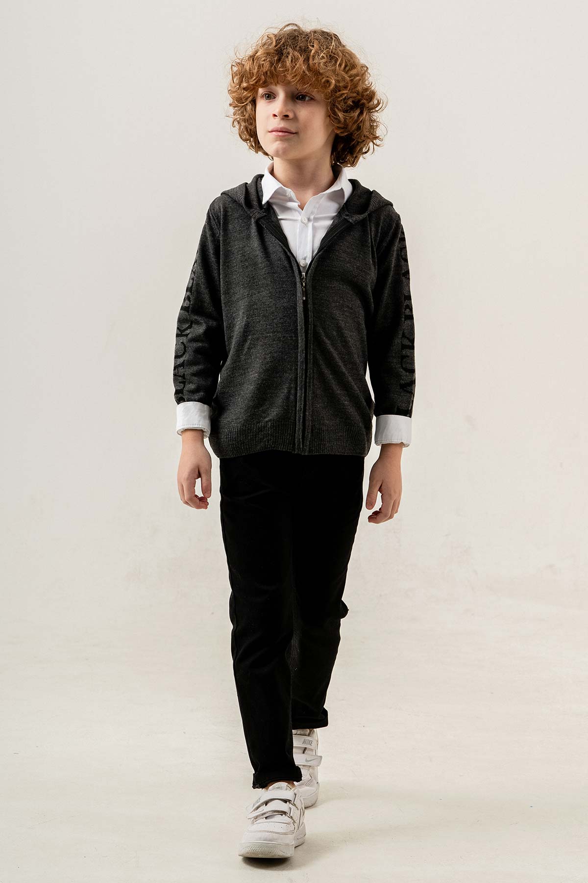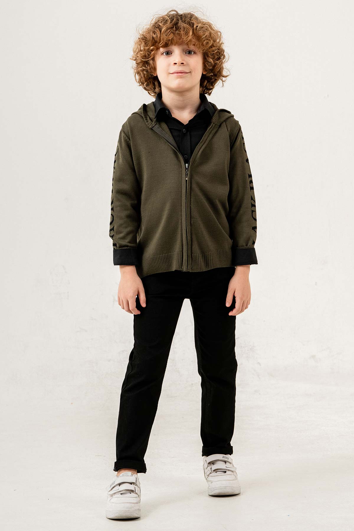 Kapüşonlu Fermuarlı Akrilik 3 Parça Erkek Çocuk Triko Takım