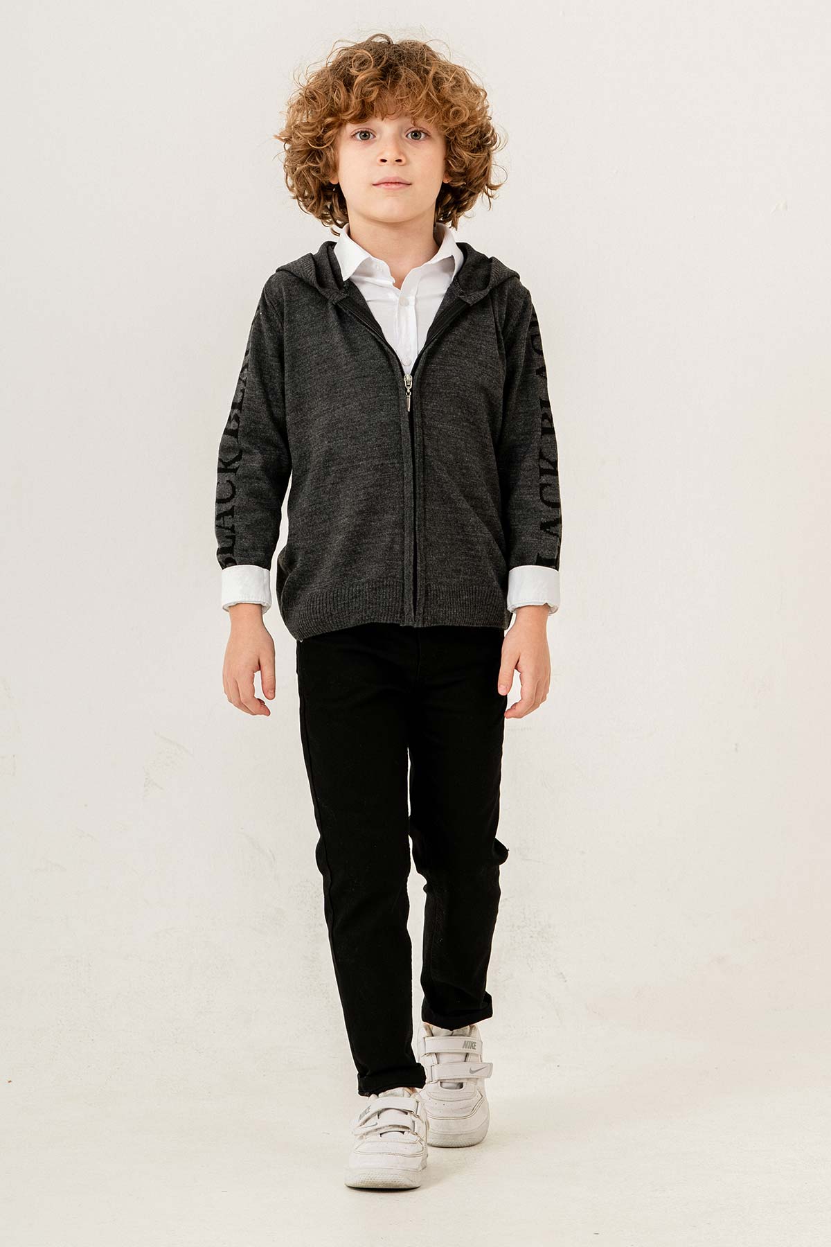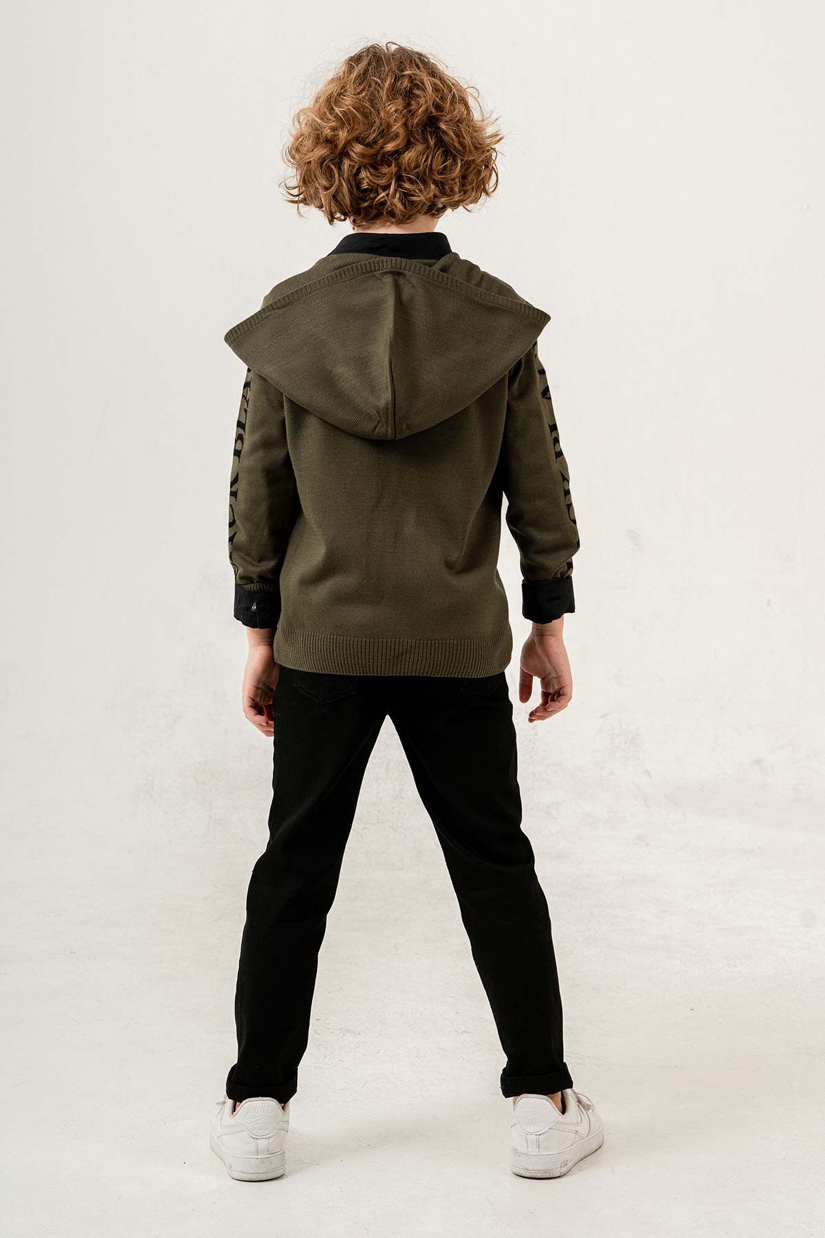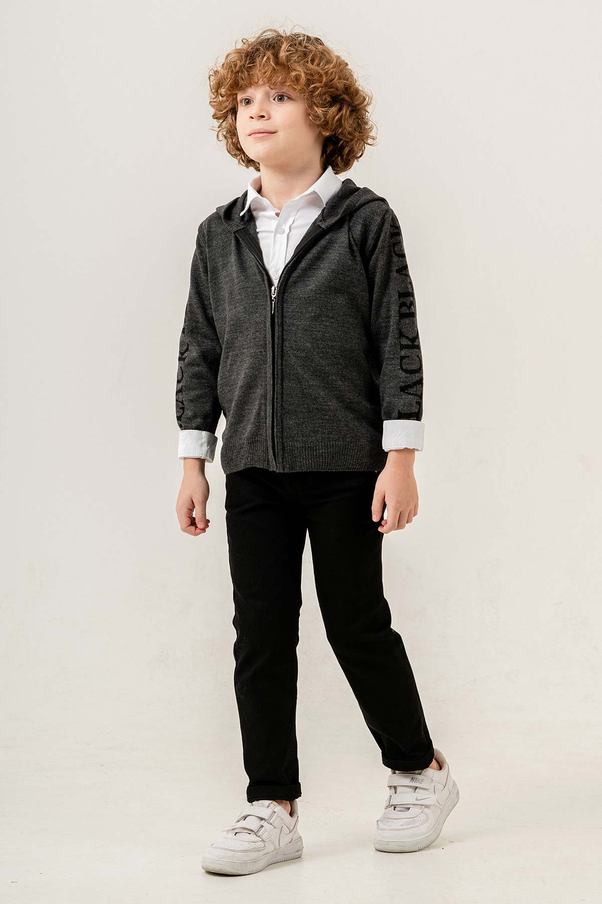 Kapüşonlu Fermuarlı Akrilik 3 Parça Erkek Çocuk Triko Takım