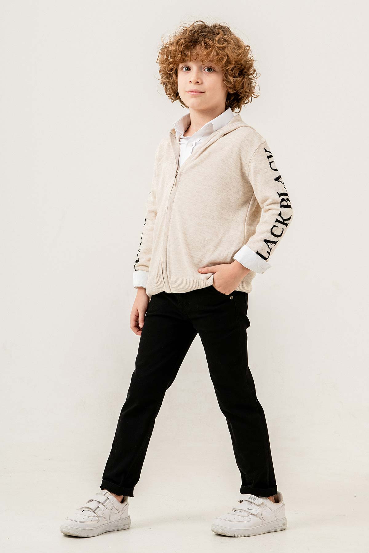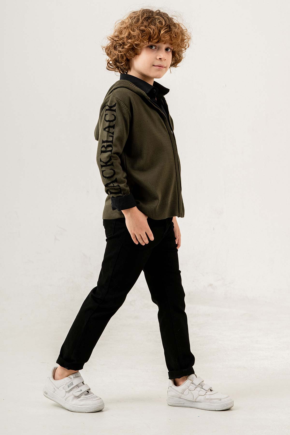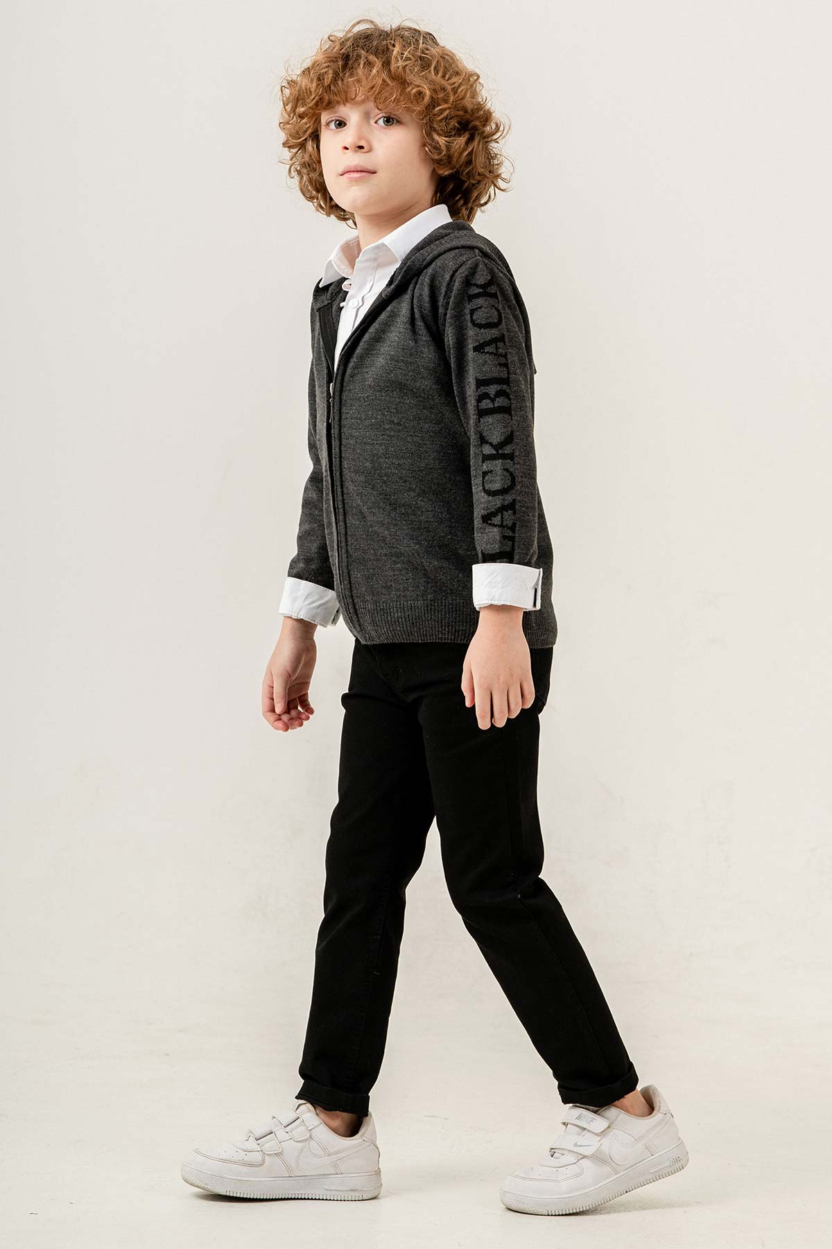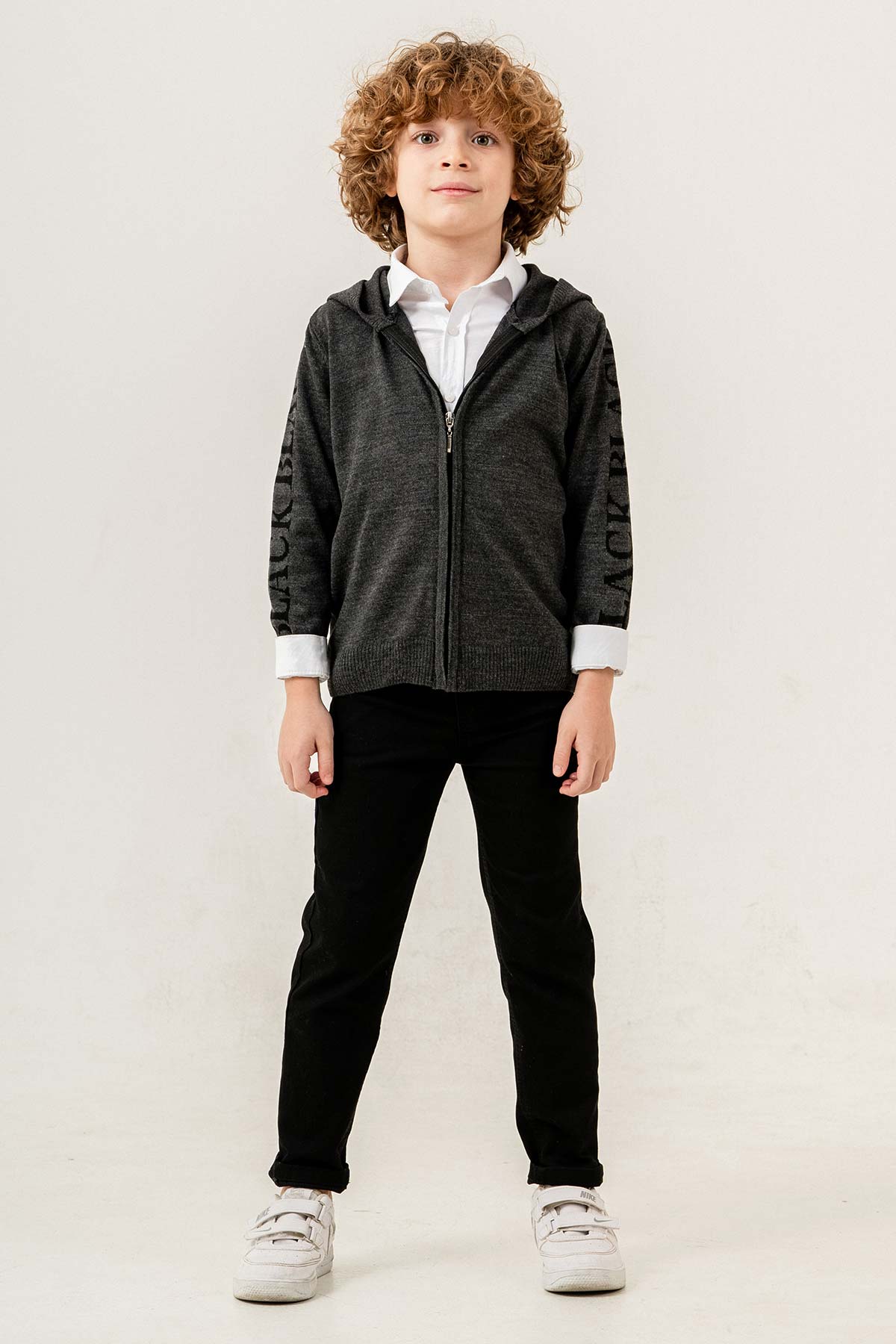 Kapüşonlu Fermuarlı Akrilik 3 Parça Erkek Çocuk Triko Takım