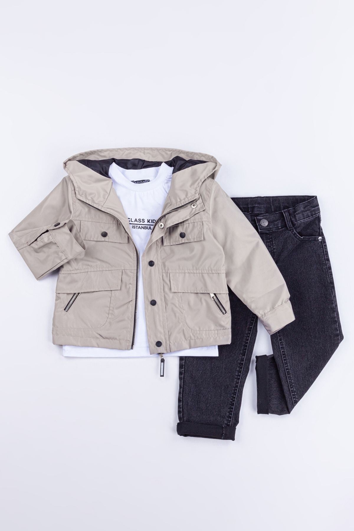 Kapüşonlu Fermuarlı & Çıtçıtlı Su Geçirmez 3'lü Erkek Çocuk Ceketli Takım