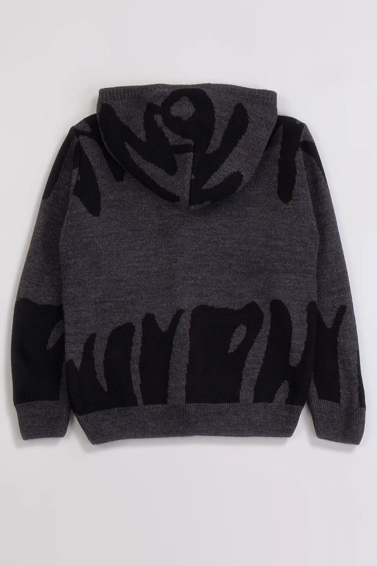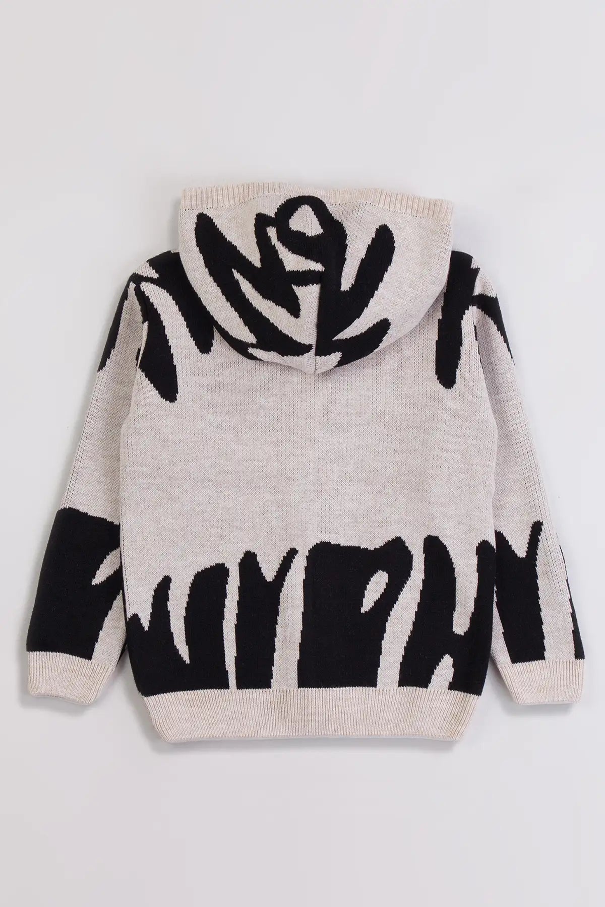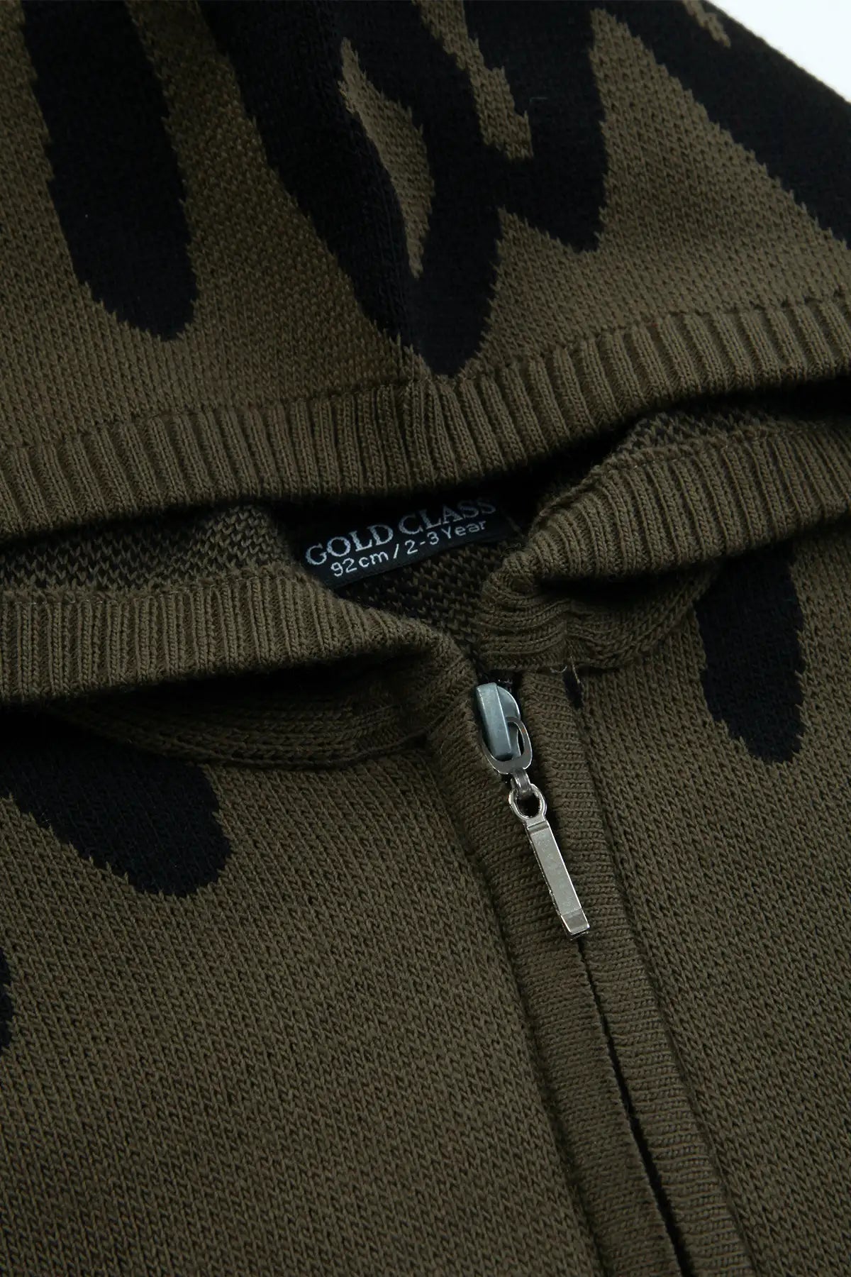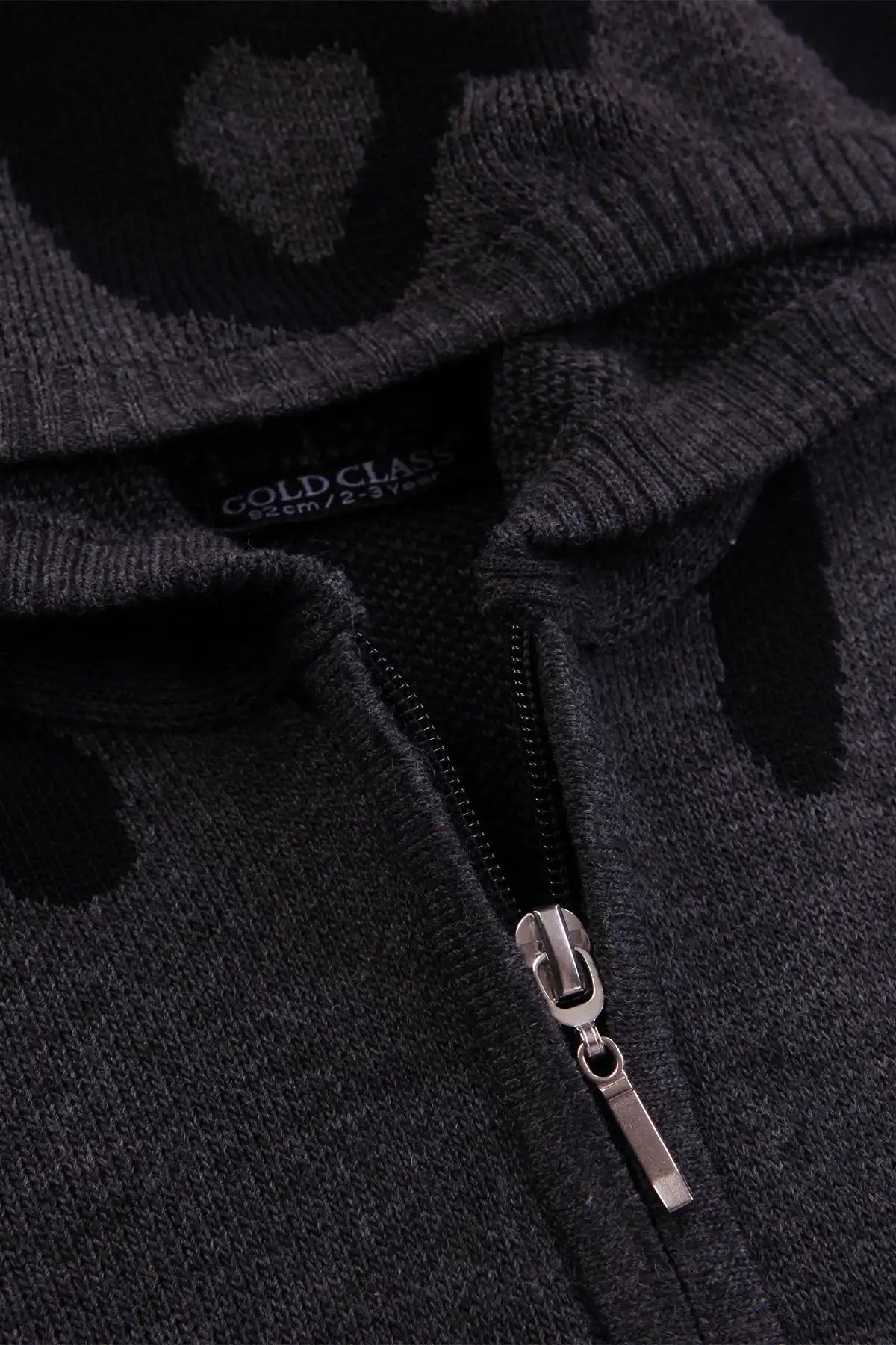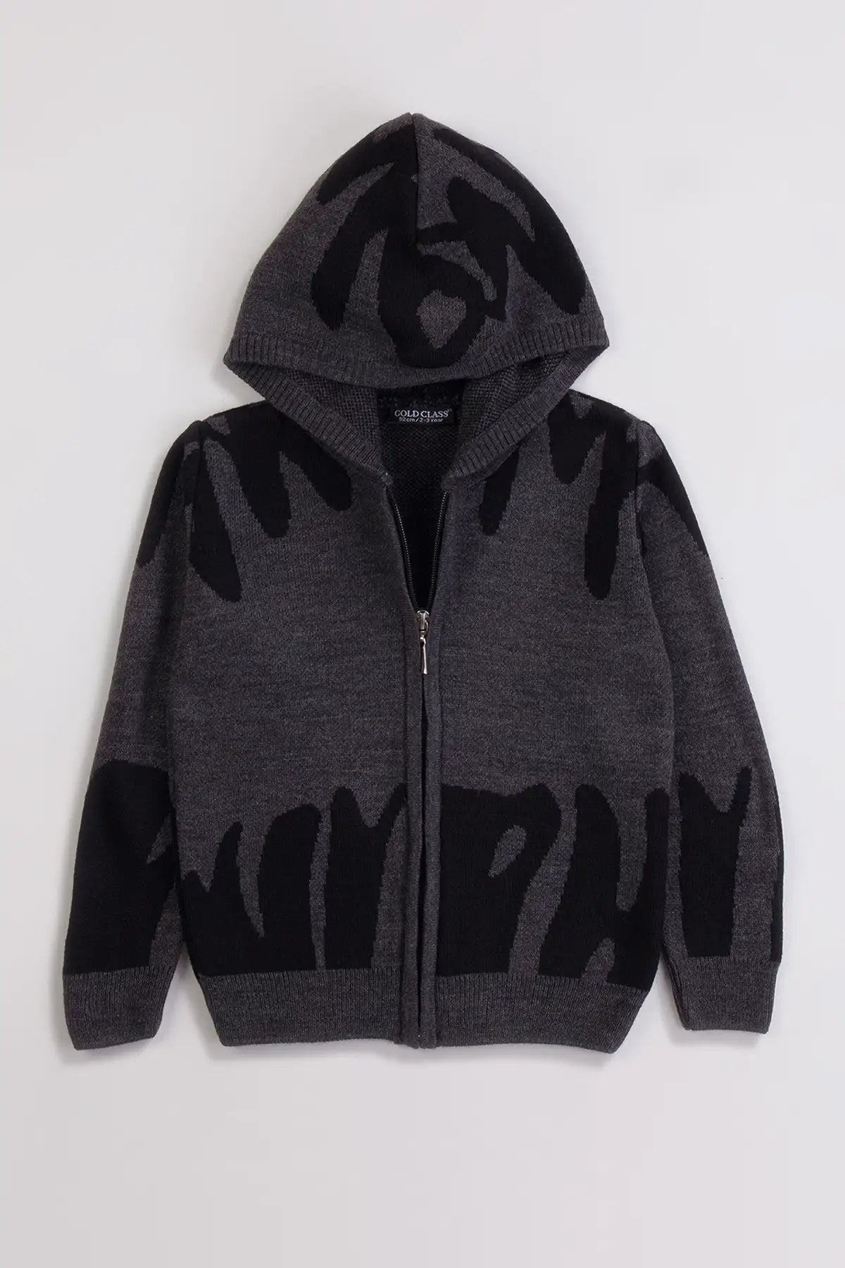 Kapüşonlu Fermuarlı Uzun Kol Erkek Çocuk Triko Hırka