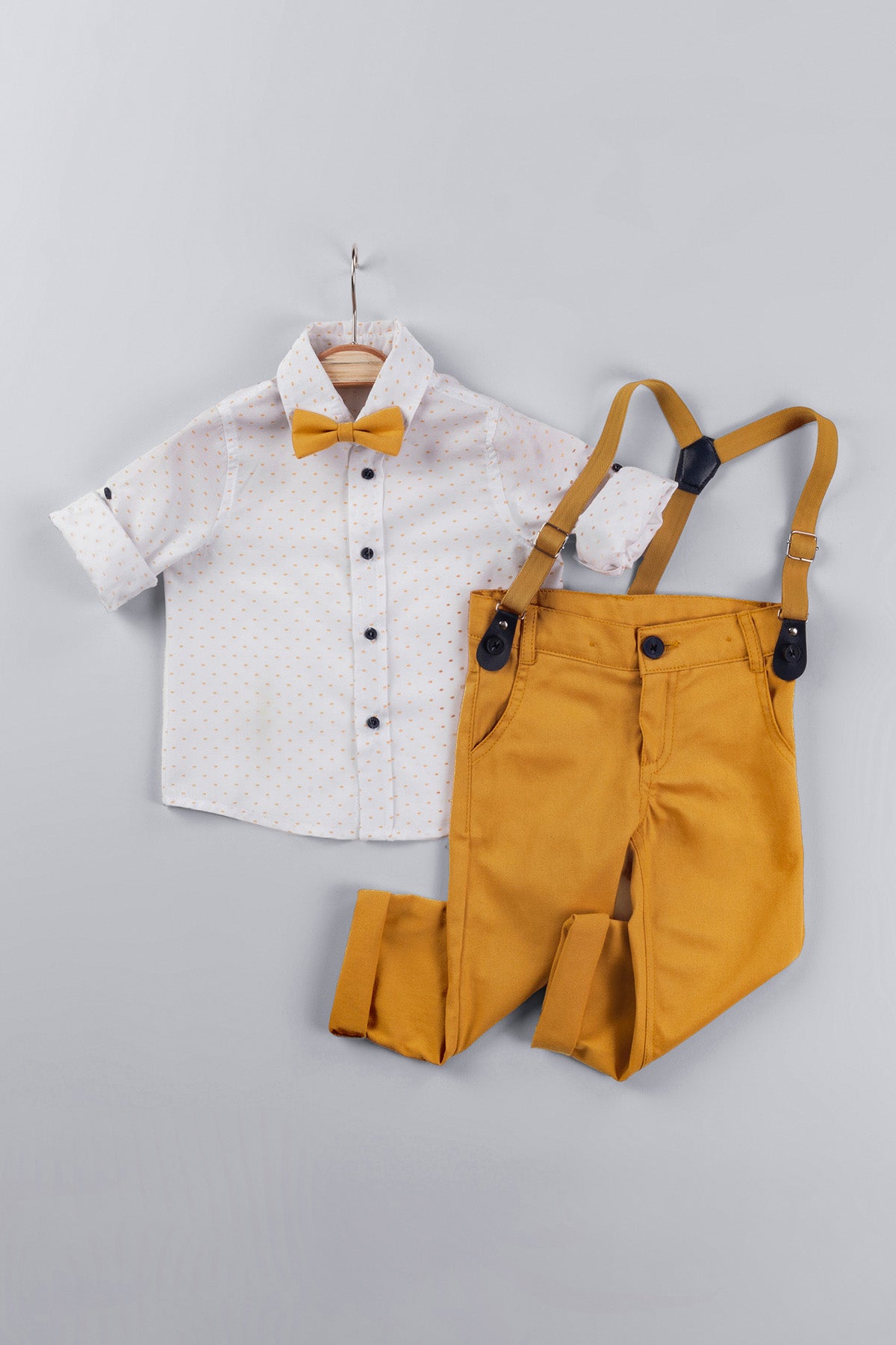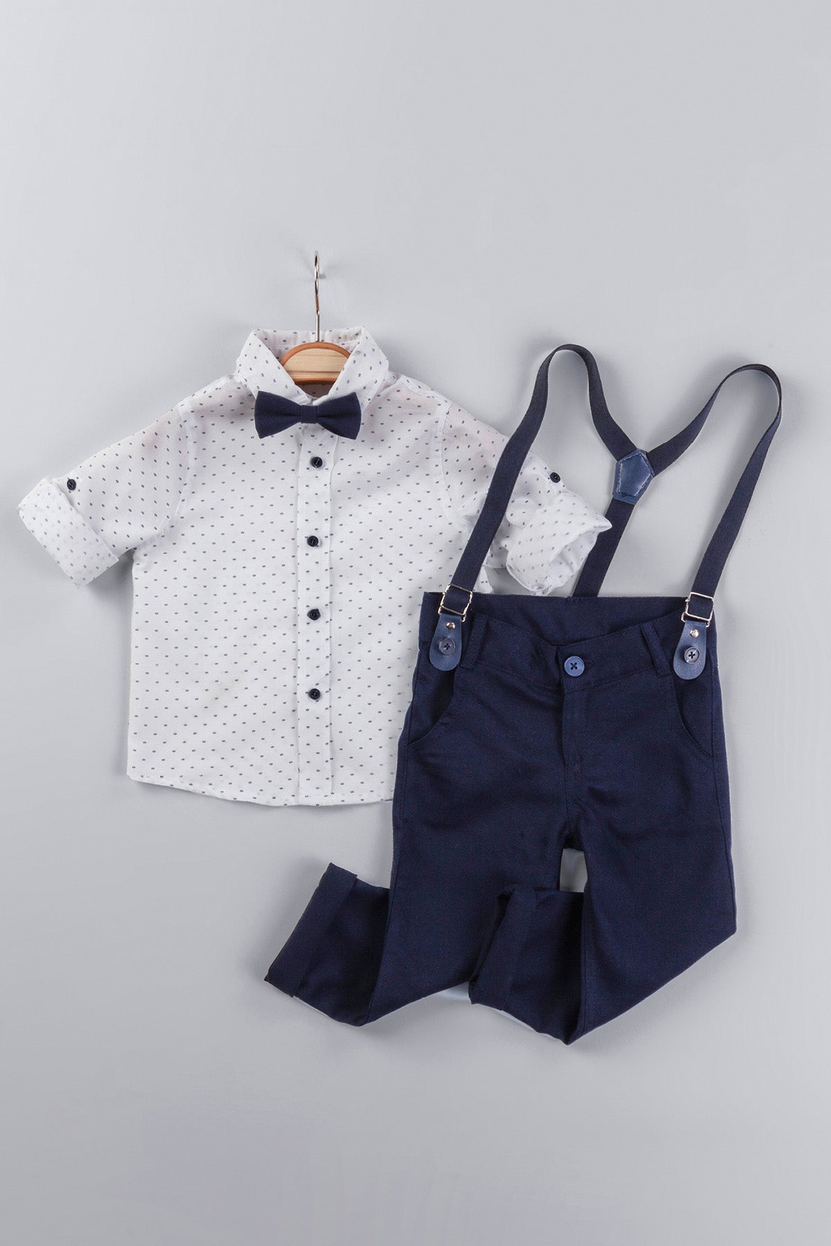 Gold Class Kidswear markasının Nilüfer desenli salopetli gömlekli erkek çocuk takımı, çocuğunuzun gardırobuna şıklık ve zarafet katarken, günlük kullanım ve özel etkinlikler için uygun bir seçenektir.