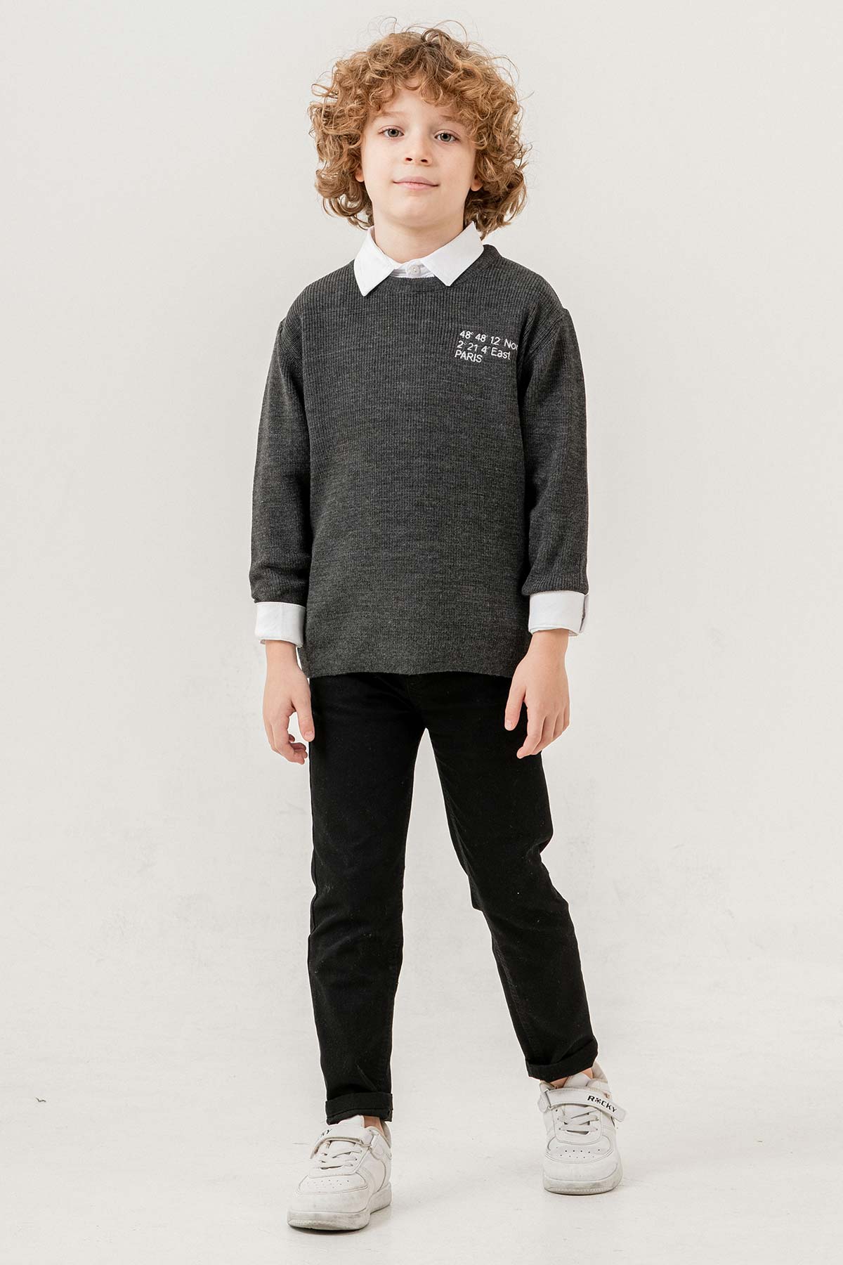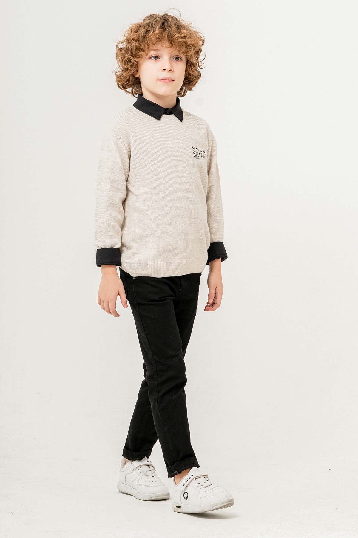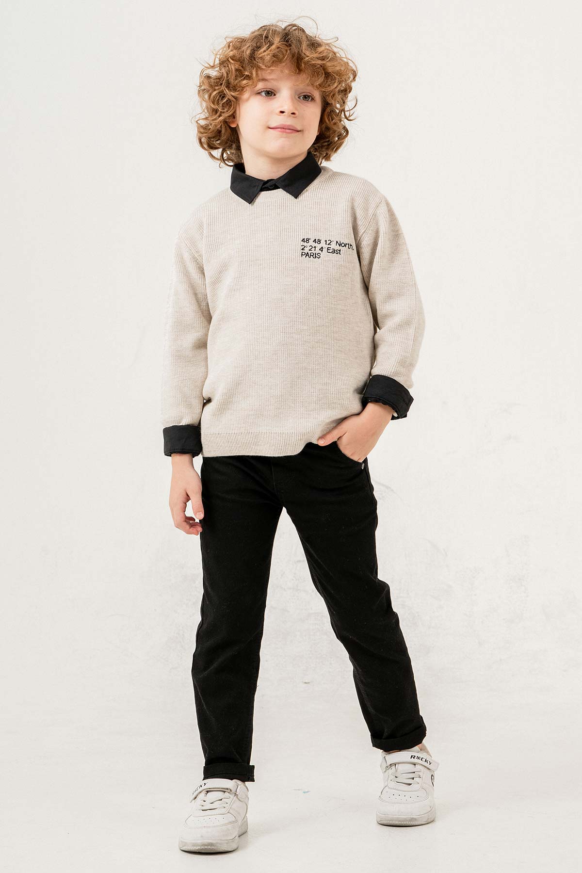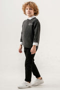 Pantolon & Gömlekli Baskılı 3 Parça Erkek Çocuk Triko Takım