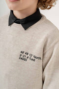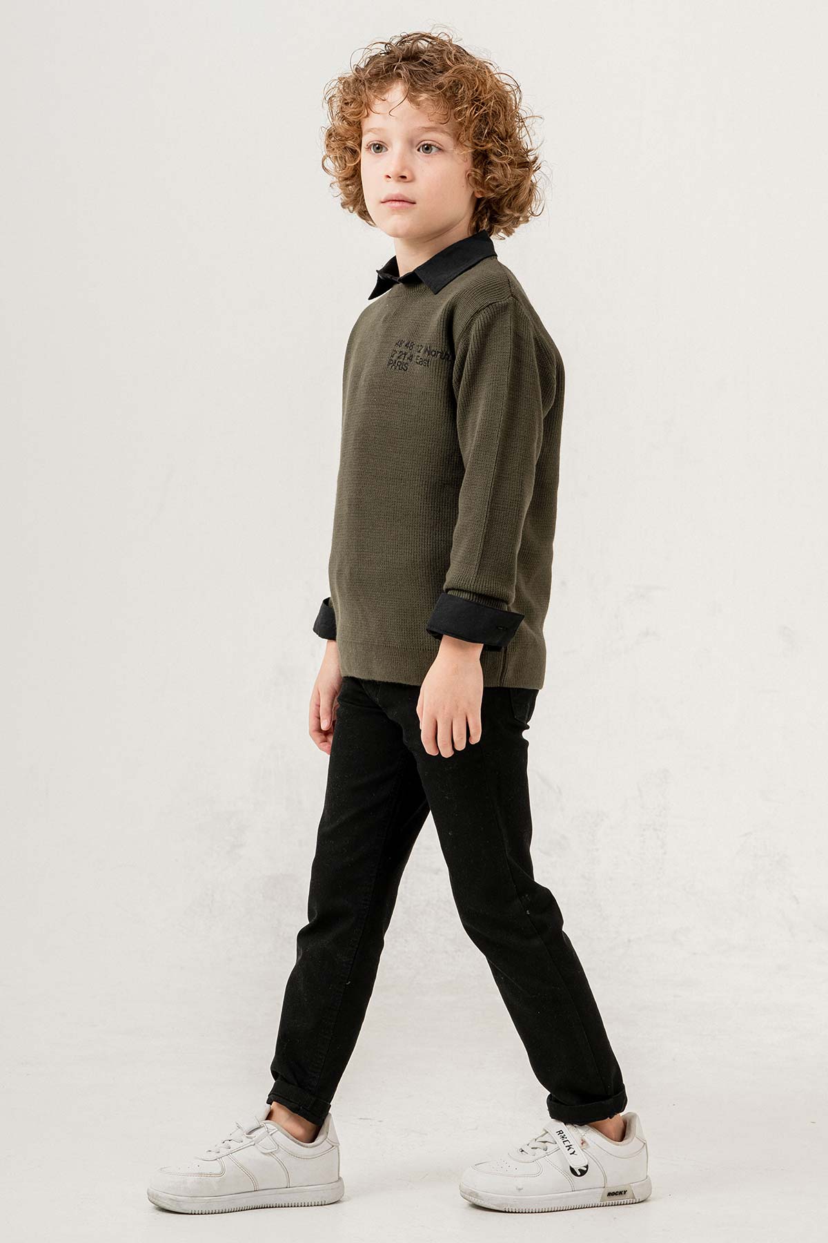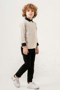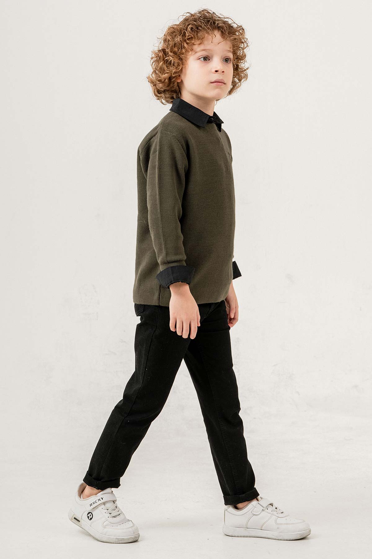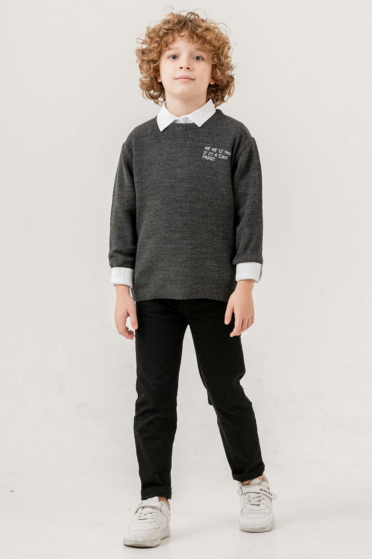 Pantolon & Gömlekli Baskılı 3 Parça Erkek Çocuk Triko Takım