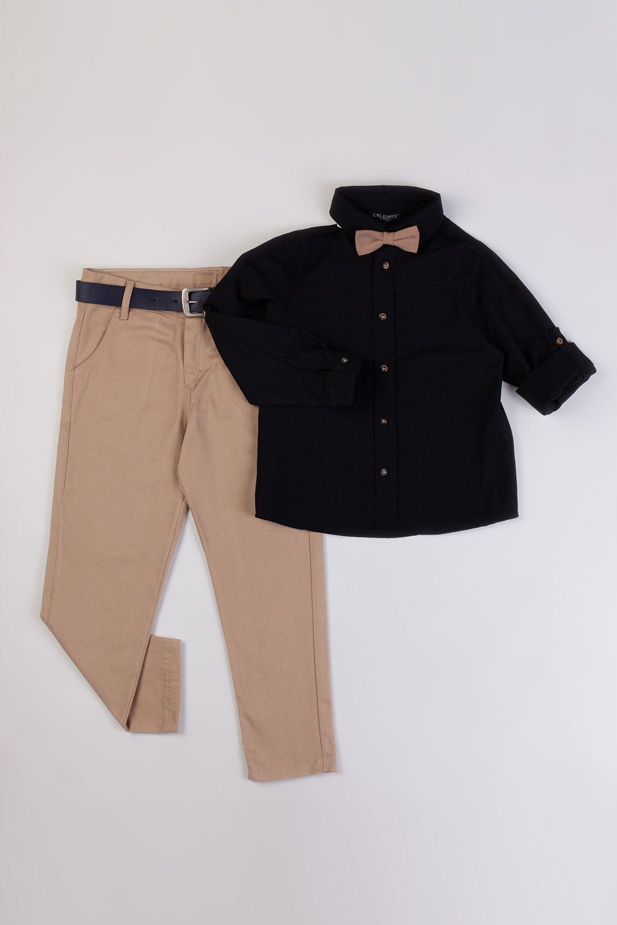Papyonlu Kemerli 4'lü Erkek Çocuk Gömlekli Takım