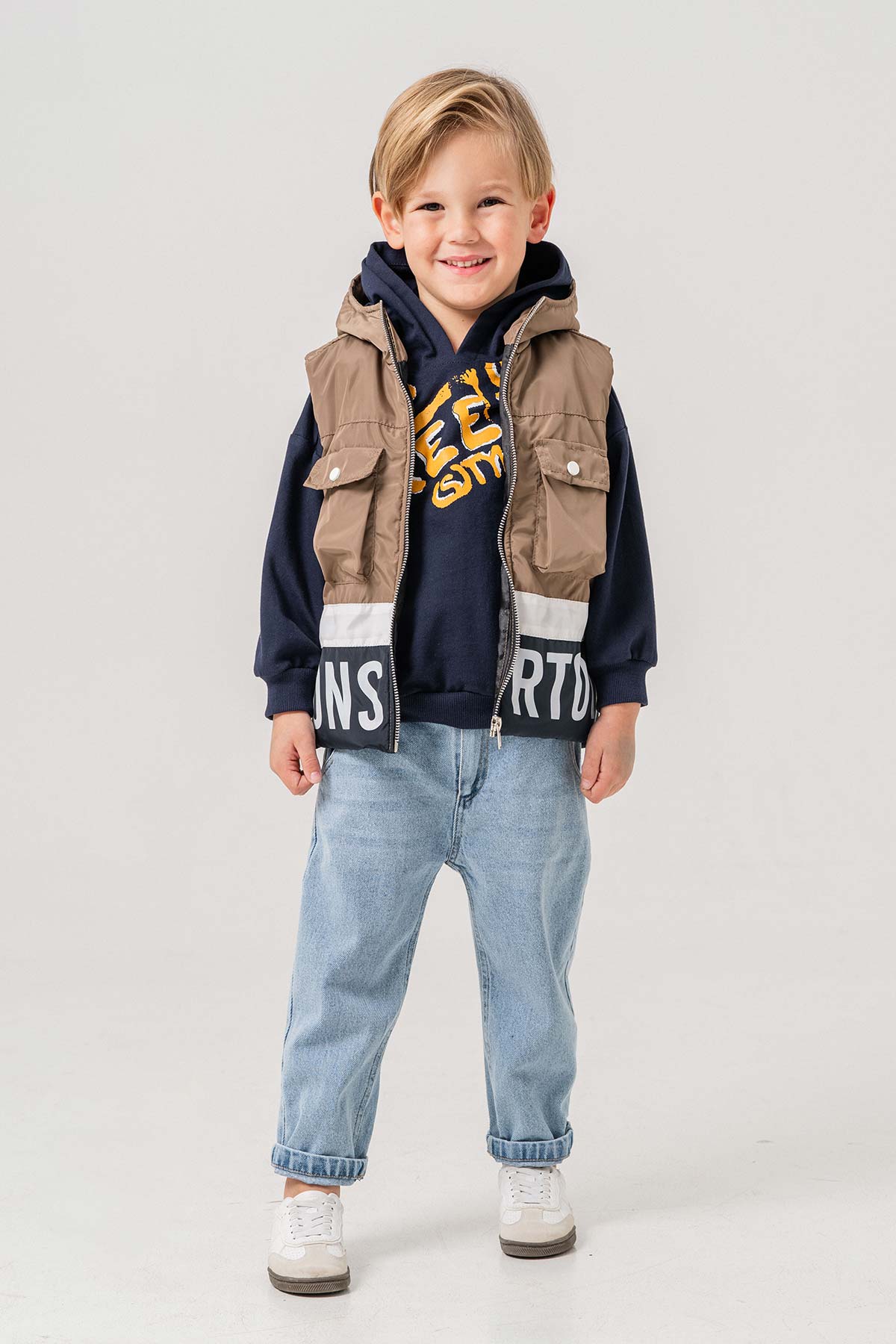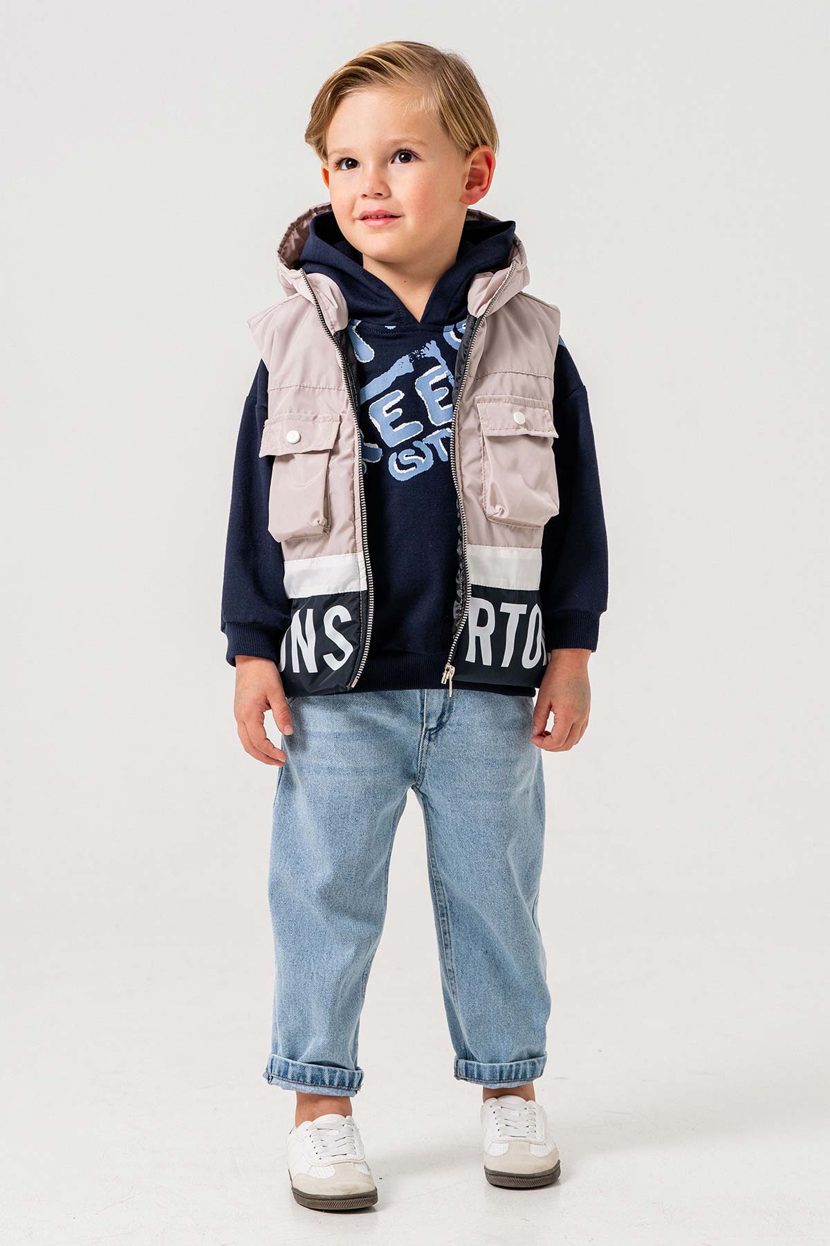 Gold Class Kidswear, 2-5 yaş arası erkek çocuklar için tasarladığı Su Geçirmez Astarlı Kapüşonlu 3 Parça Erkek Çocuk Yelekli Takım ile çocuk modasında fark yaratıyor. Günlük kullanım ve özel etkinlikler için ideal olan bu takım, hem şıklığı hem de rahatlığı bir arada sunuyor.