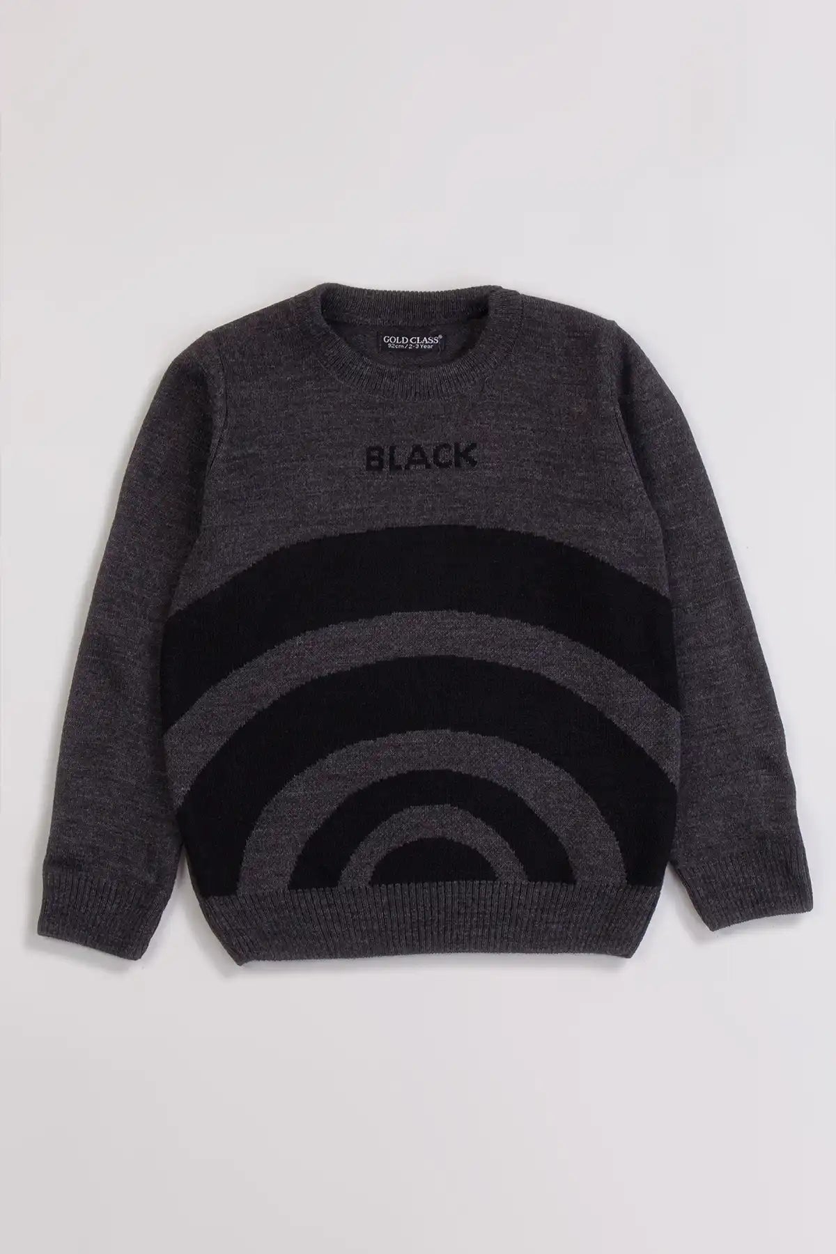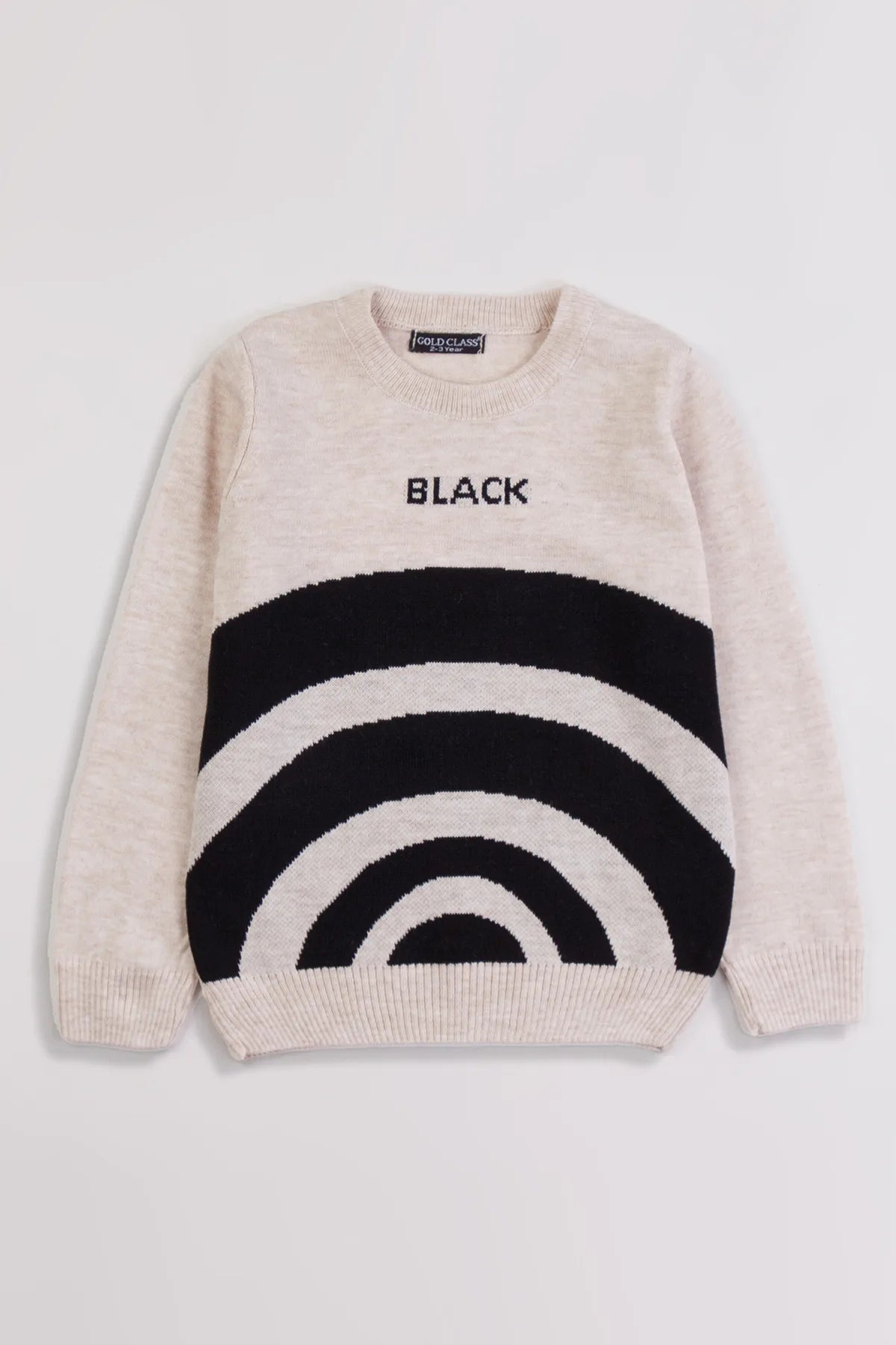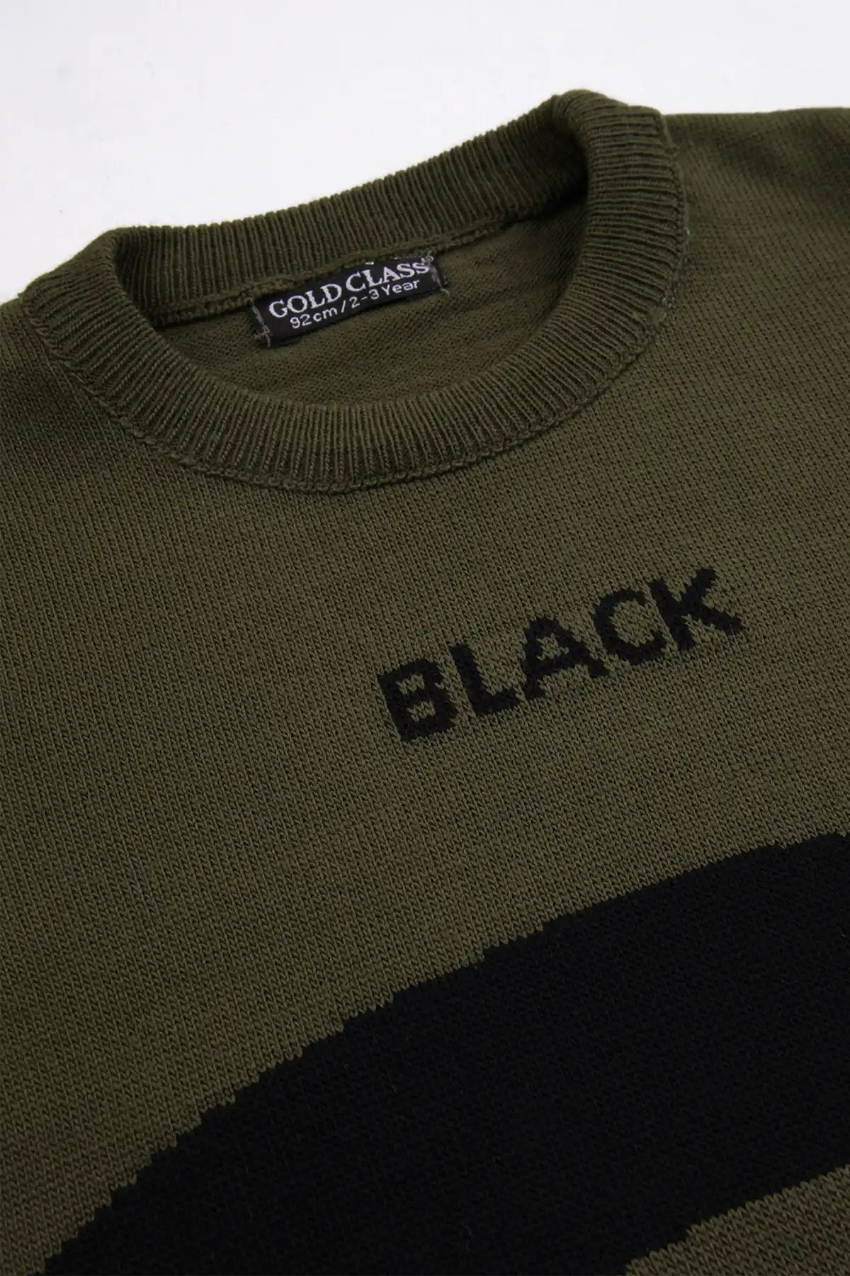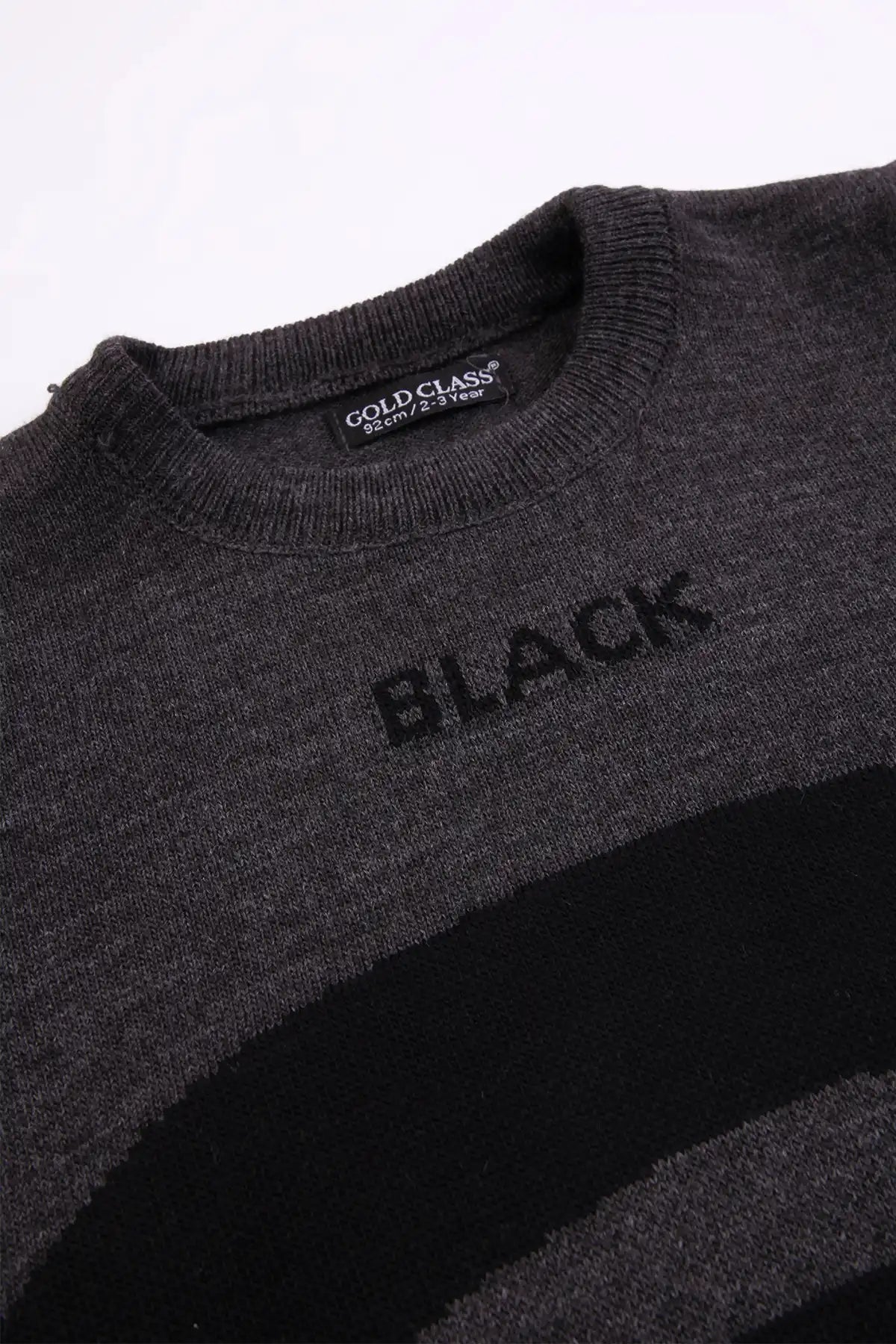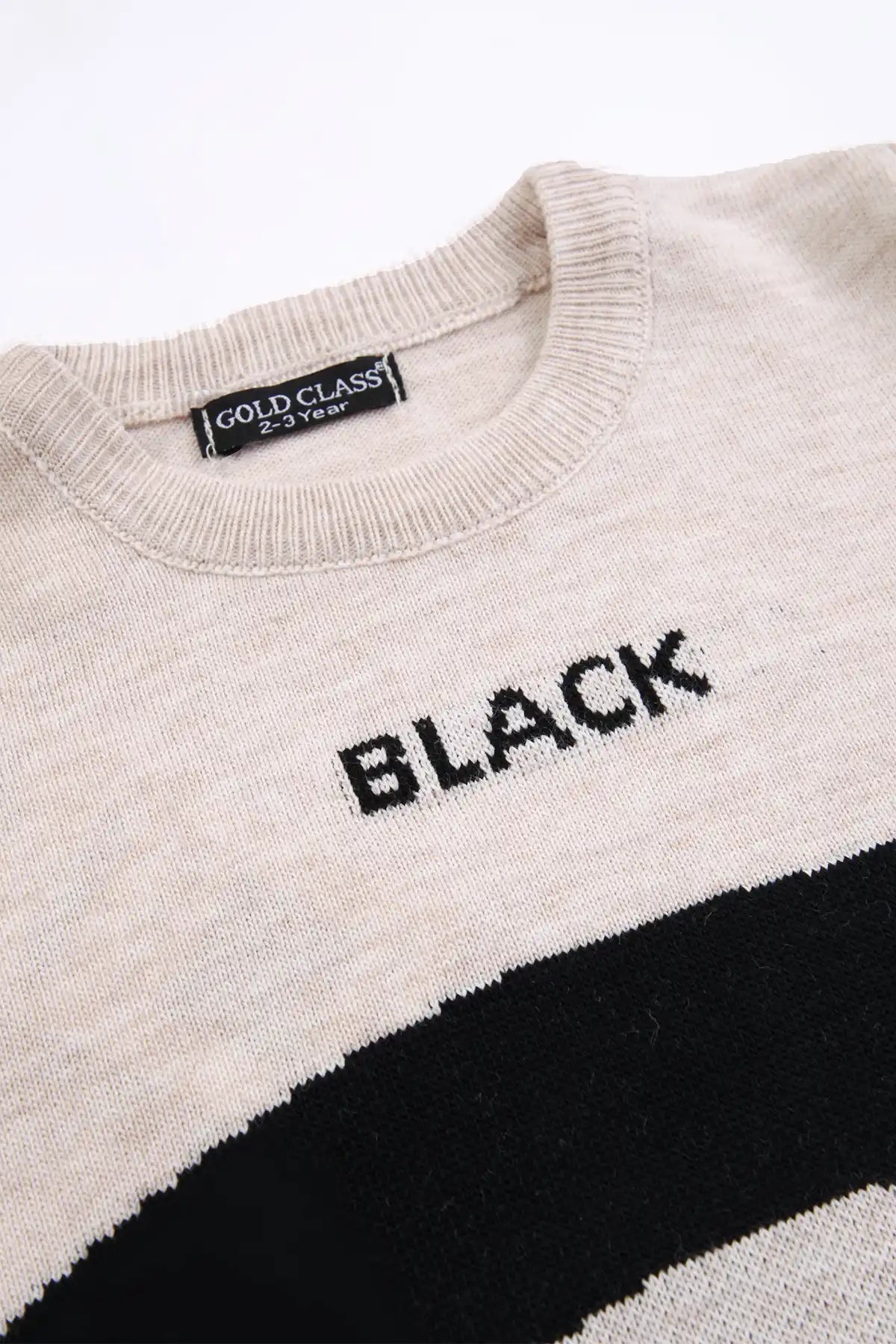 %100 akrilik kumaştan üretilen bu kazak, soğuk günlerde miniklerinizi sıcak tutar. Üzerindeki "Black" baskısı ve çizgi desenleri, modern ve dinamik bir tarz sunar. Uzun kollu ve bisiklet yaka tasarımı, günlük kullanım için idealdir.