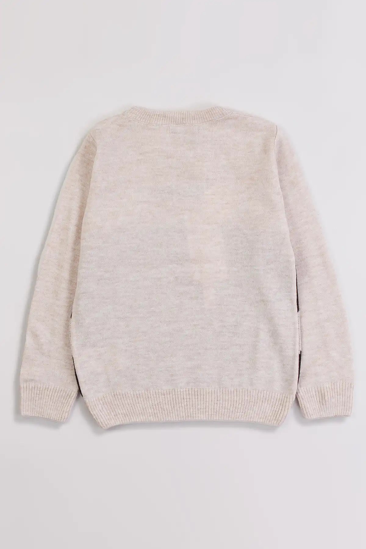Uzun Kol Bisiklet Yaka Desenli Erkek Çocuk Triko Kazak