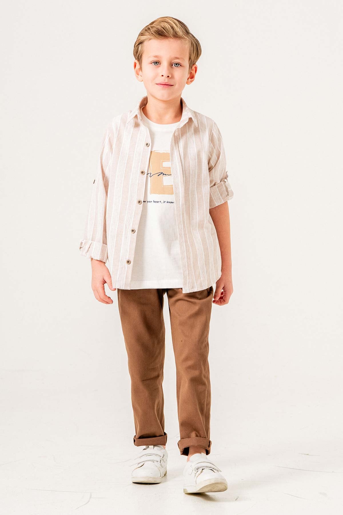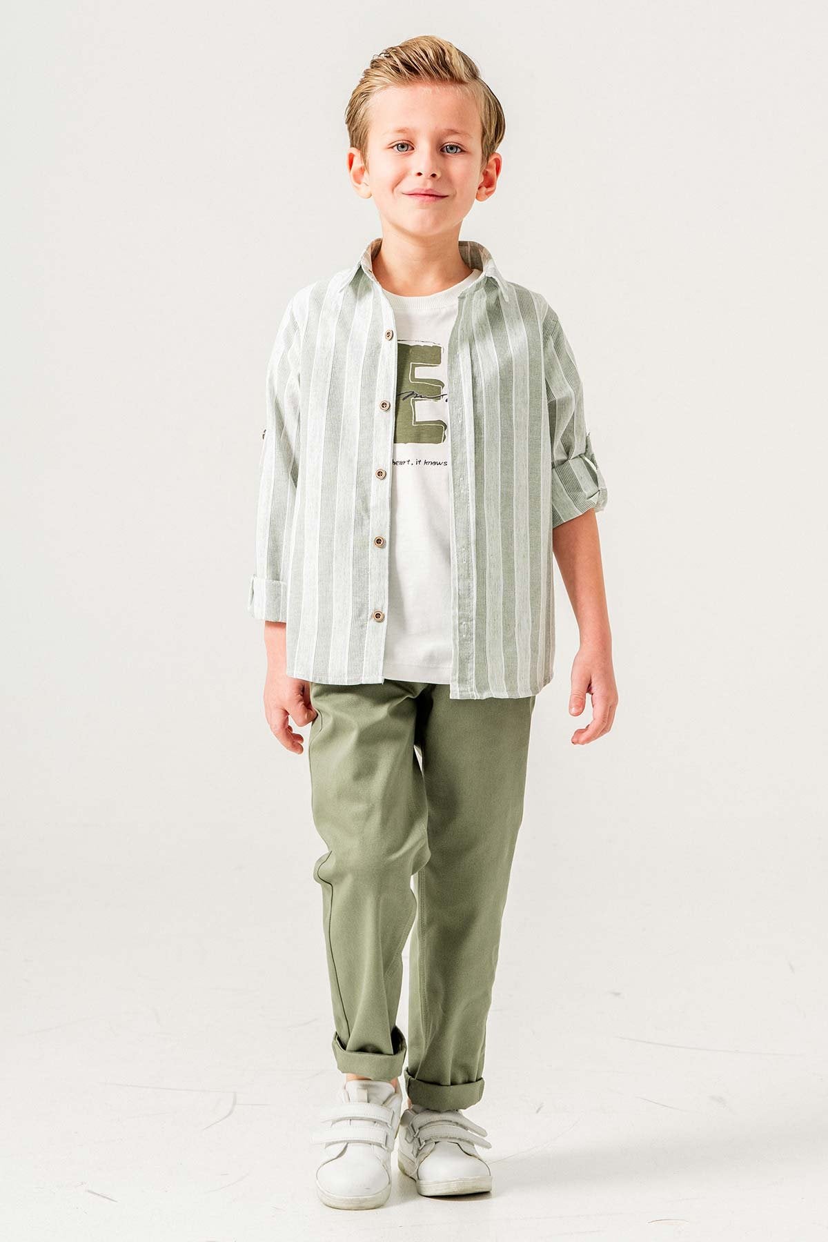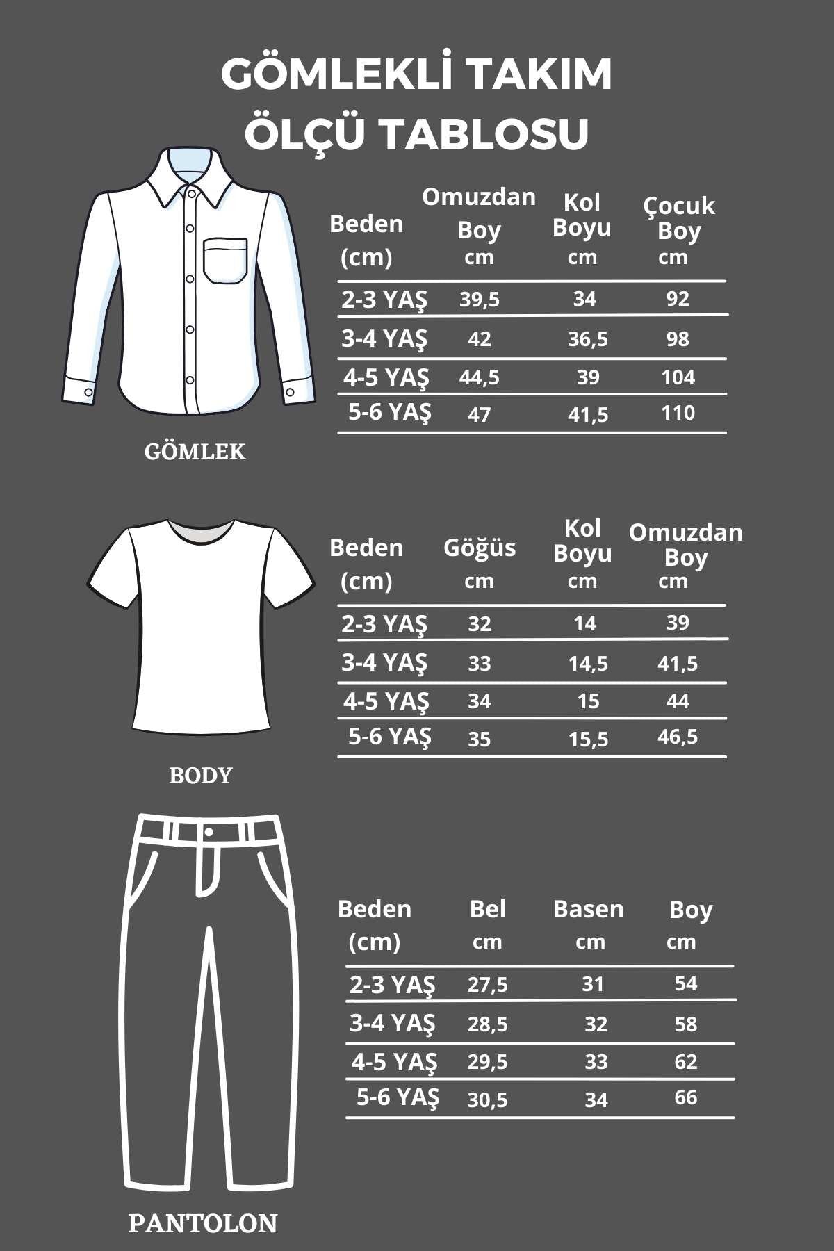 Gold Class Kidswear, 2-5 yaş arası erkek çocuklar için hem şık hem de rahat bir tasarıma imza atıyor! Uzun Kol & Body'li Gabardin 3 Parça Erkek Çocuk Gömlekli Takım, çocuğunuzun günlük kullanımda veya özel günlerde zarif bir tarz yakalaması için özenle hazırlanmıştır.